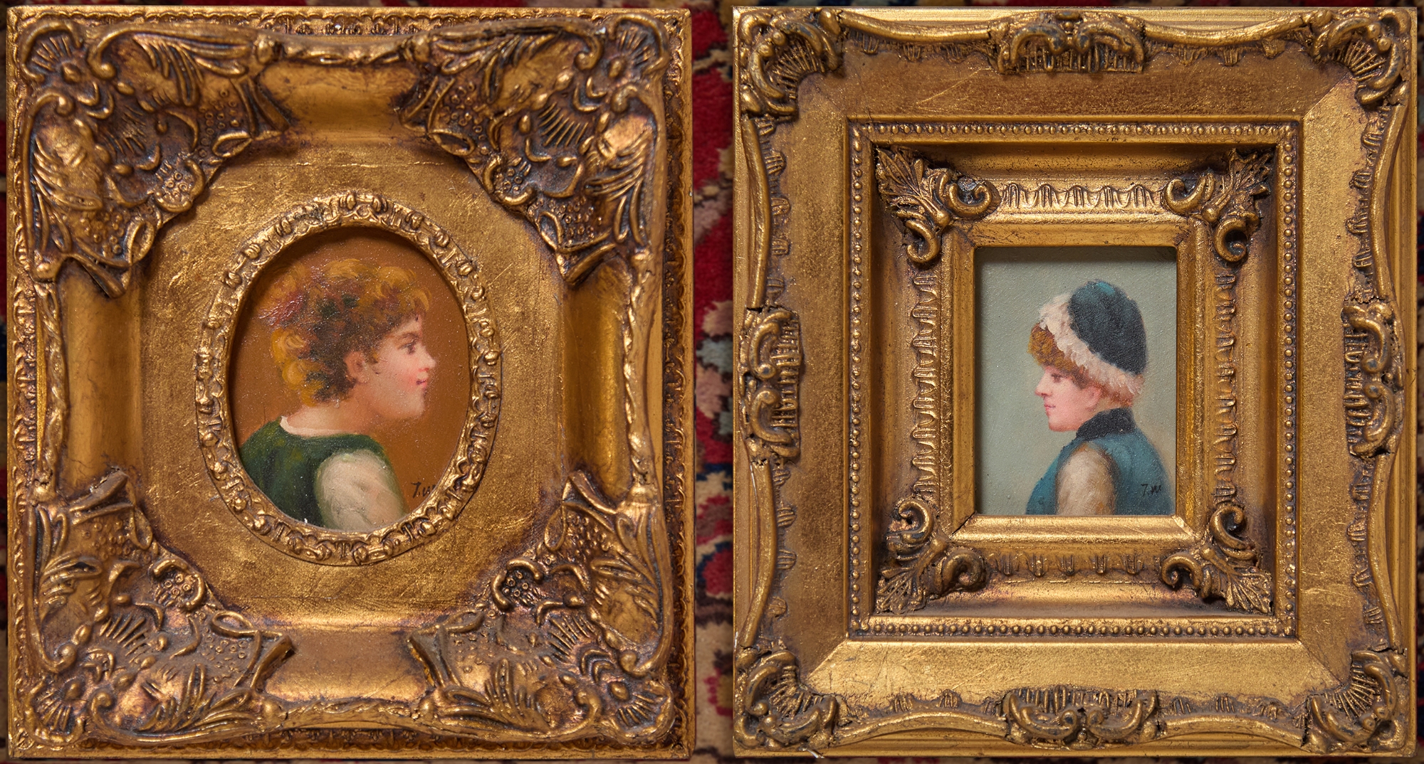 זוג ציורים בסגנון עתיק, שמן על לוח, נתונים במסגרות נאות