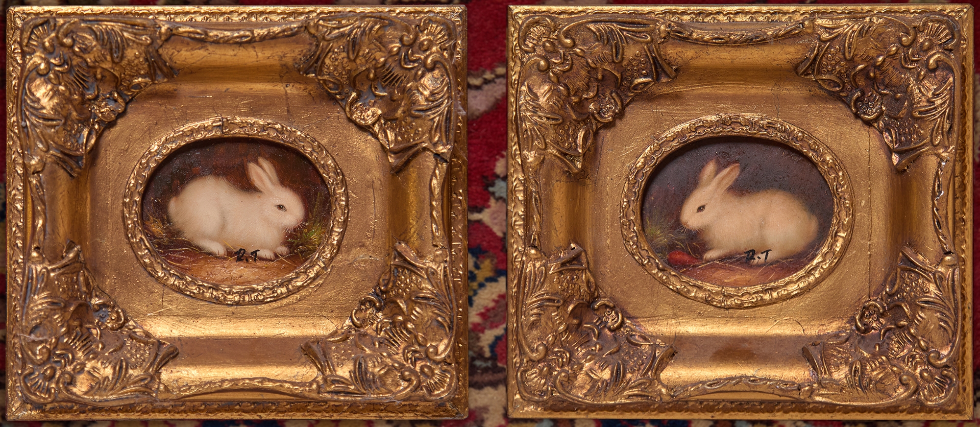 זוג ציורים בסגנון עתיק, שמן על לוח, נתונים במסגרות נאות