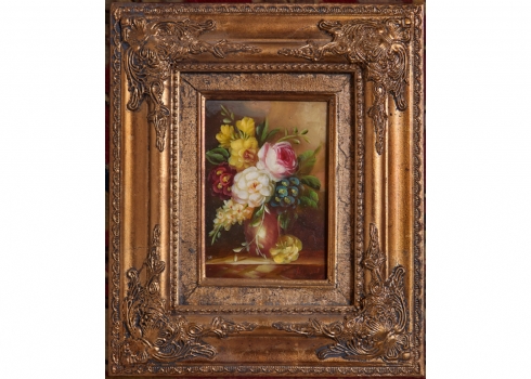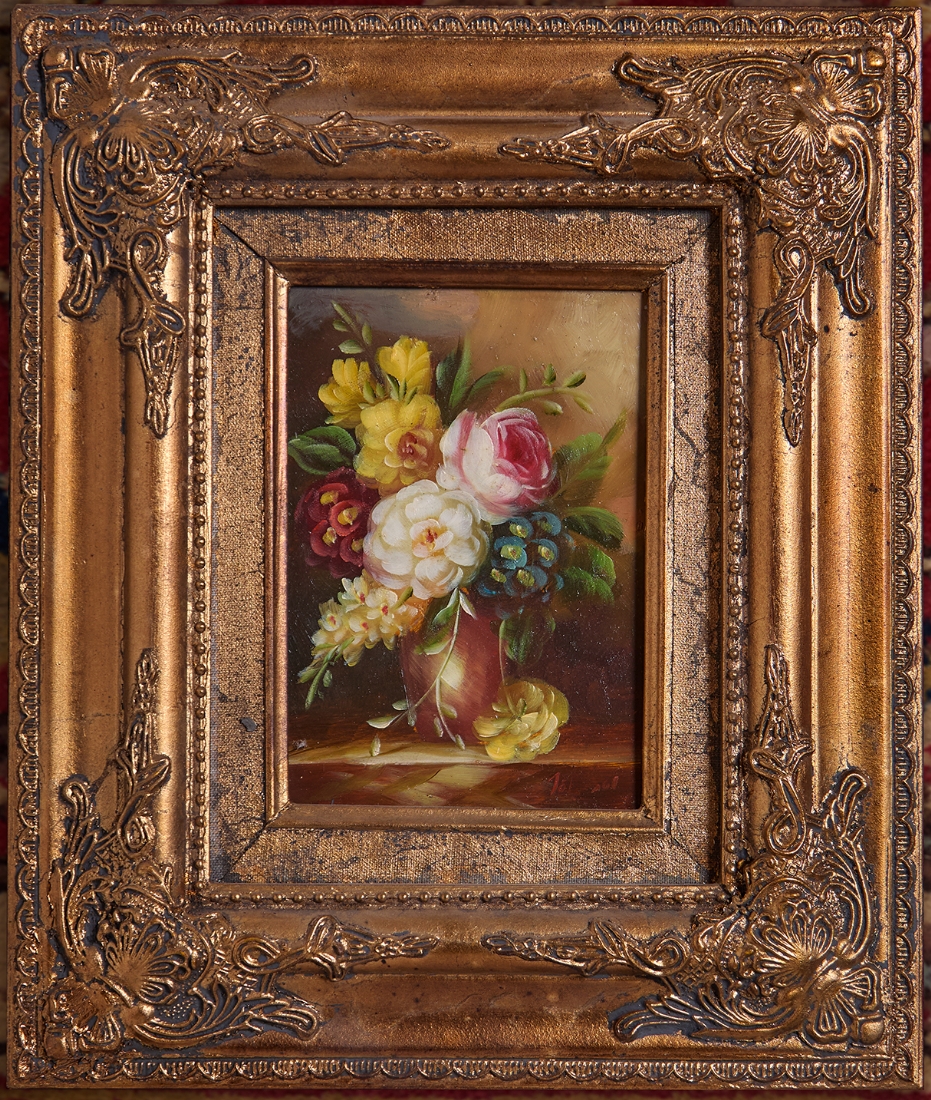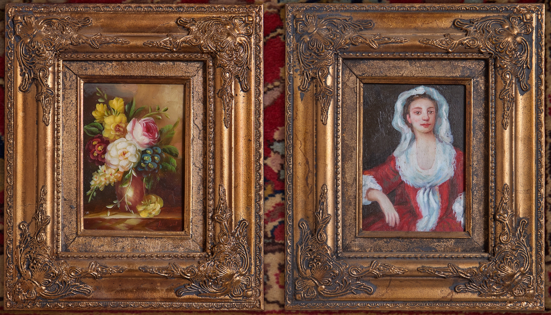זוג ציורים בסגנון עתיק, שמן על לוח, נתונים במסגרות נאות