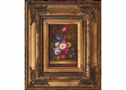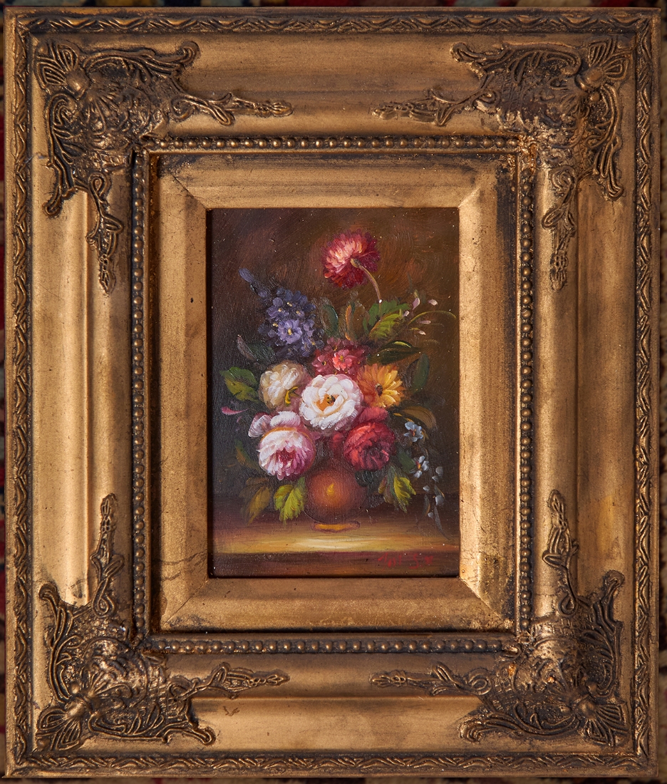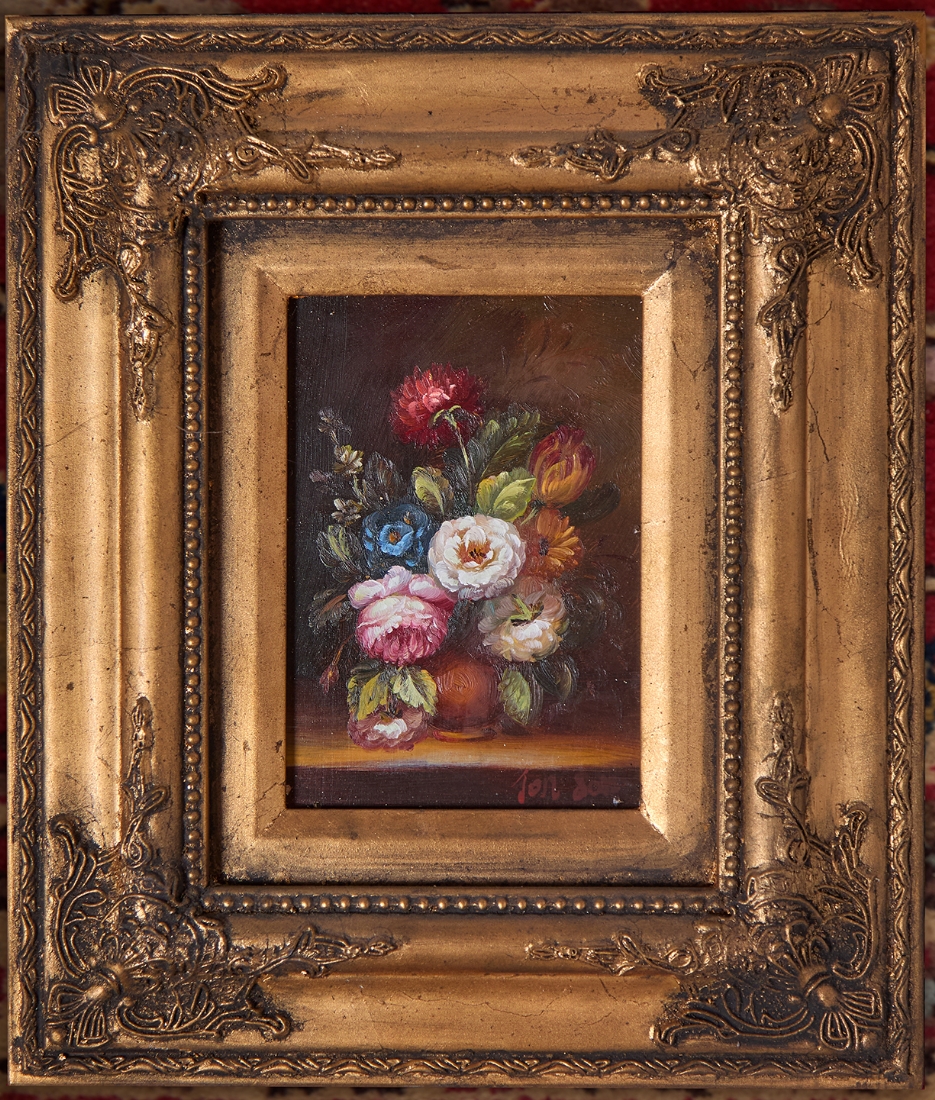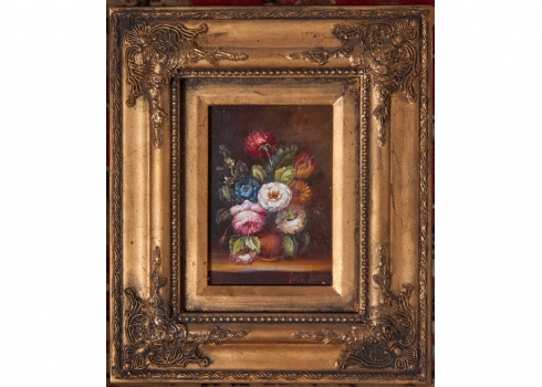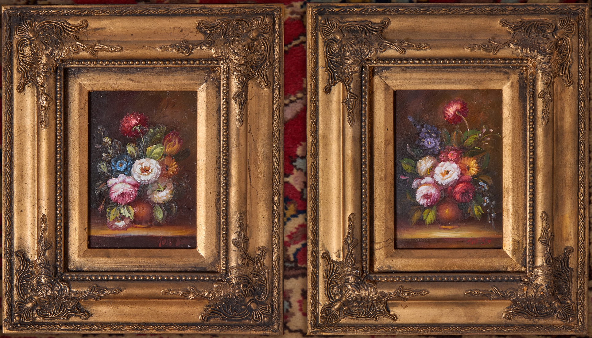 זוג ציורים בסגנון עתיק, שמן על לוח, נתונים במסגרות נאות
