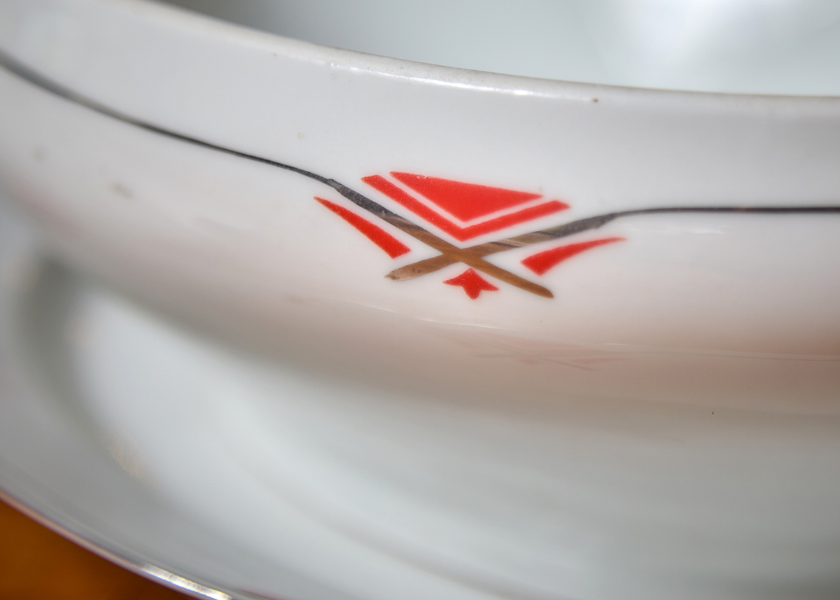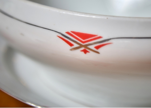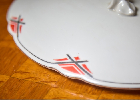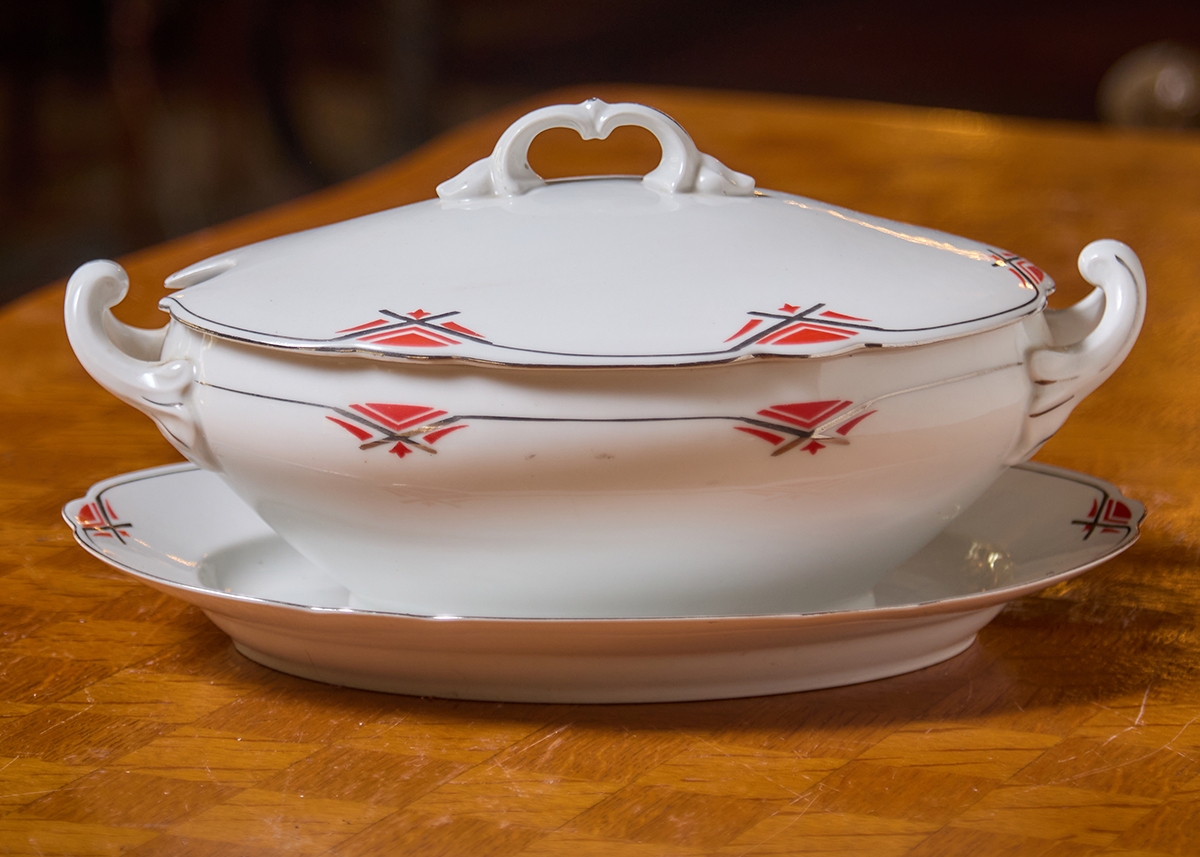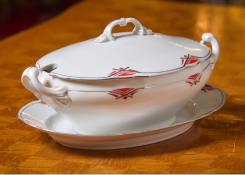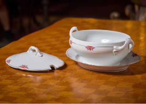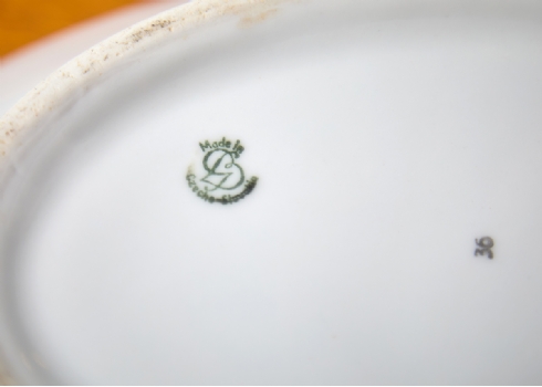 מרקיית פורצלן ומכסה תואם ותחתית, מעוטרת וחתומה