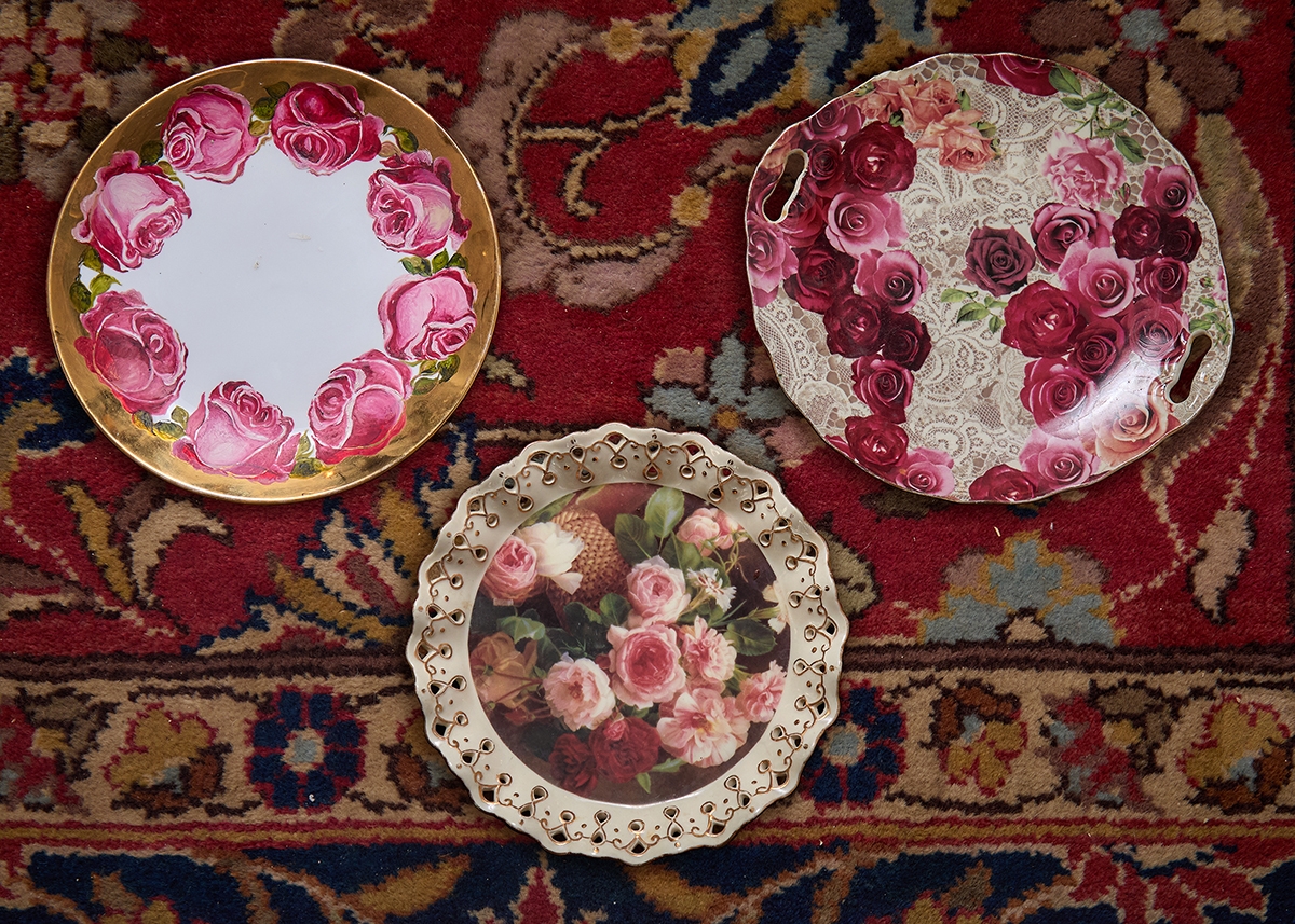 3 צלחות נוי עשויות פורצלן מעוטרות בהדפסים