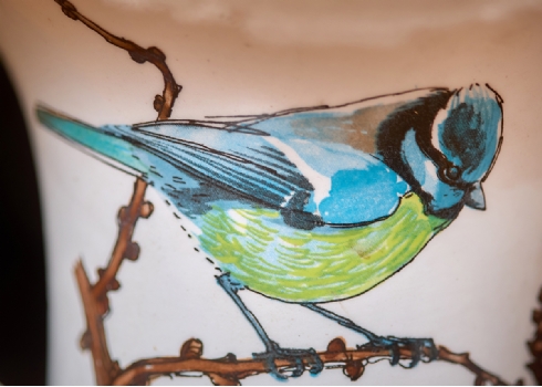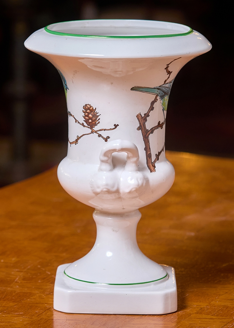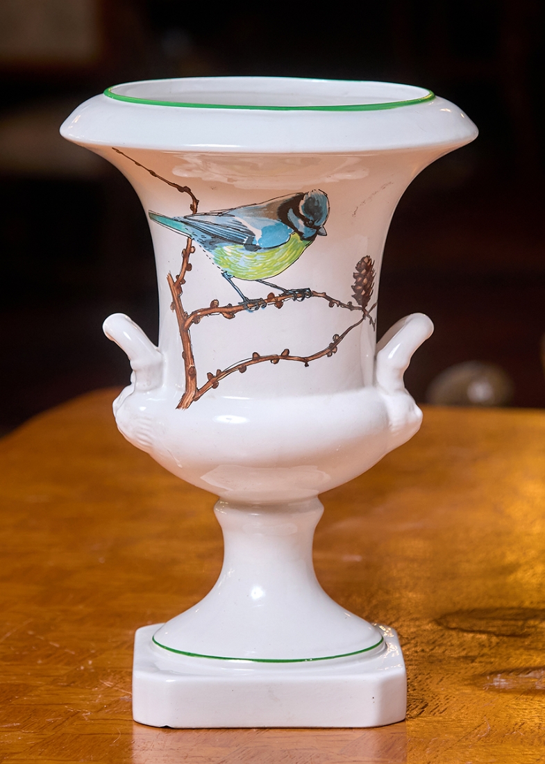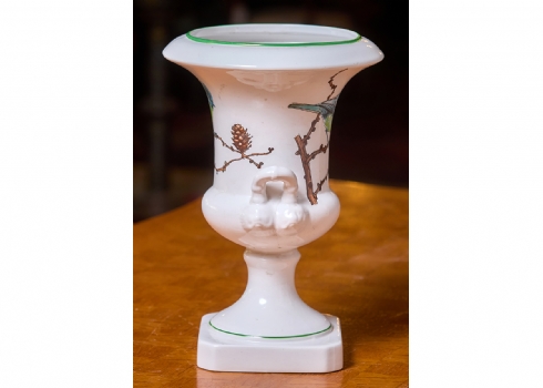 אגרטל פורצלן פורטוגלי בצורת קמפנה, מעוטר וחתום