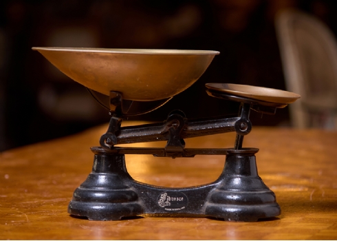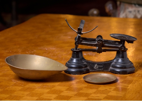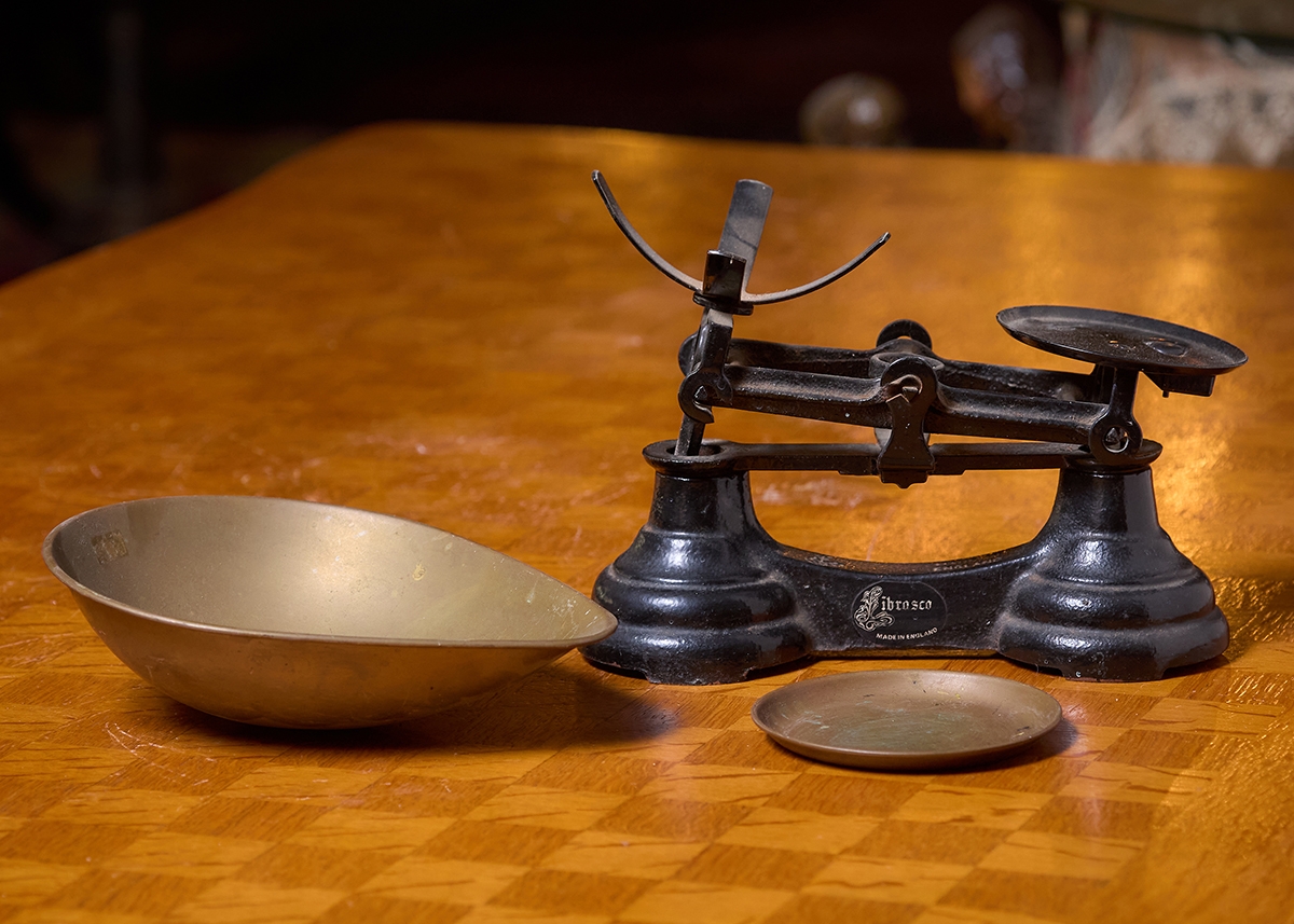 משקל מאזניים עתיק אנגלי עשוי ברזל יצוק וכפות שקילה פליז