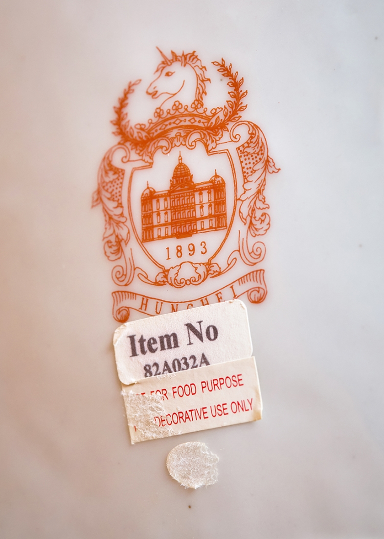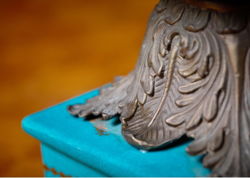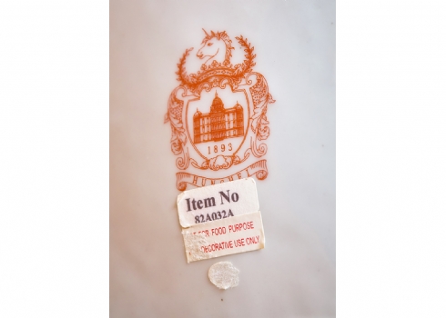 בחלק העליון יש ציפ קטן לזיגוג טורקיז והתקני מתכת, חתום