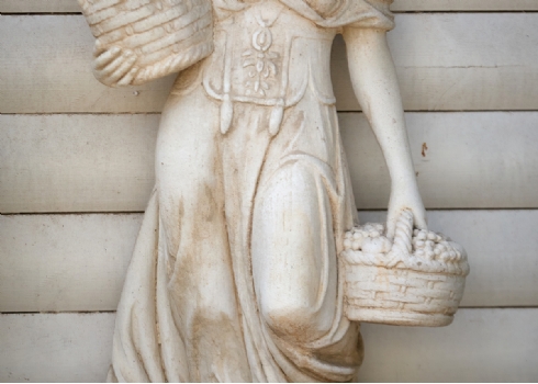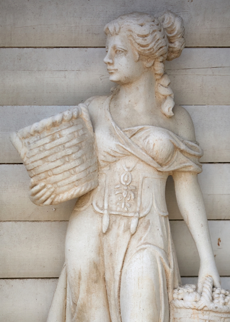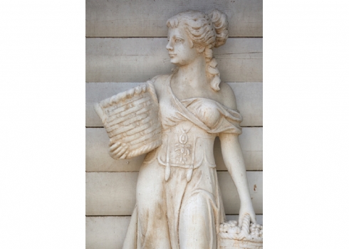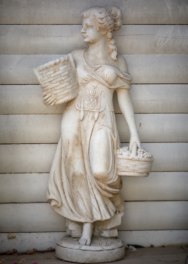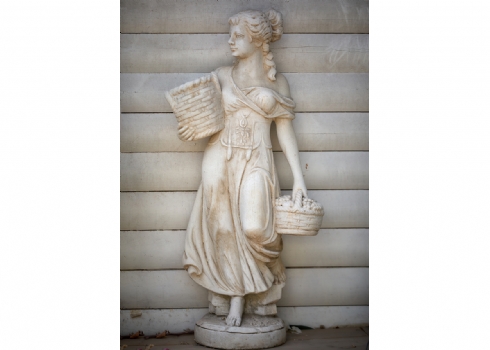 פסל גינה בדמות נערה נושאת 2 סלי נצרים