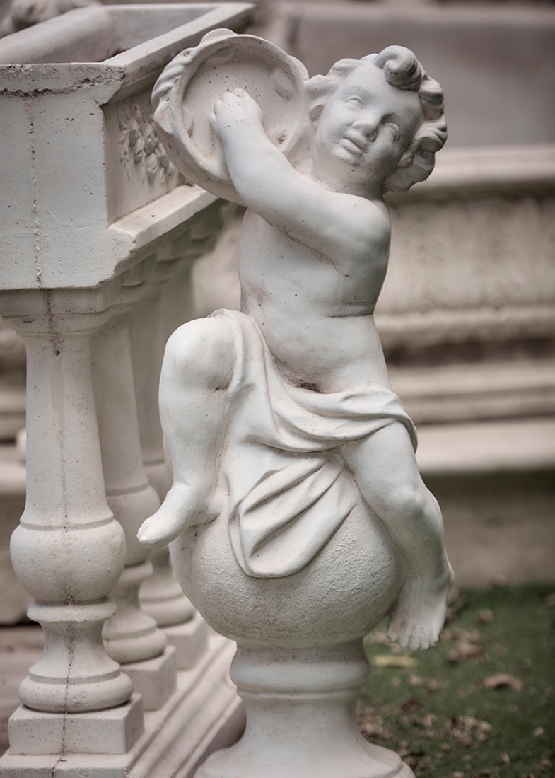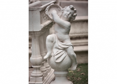 קישוט גינה בדמות ילד חמודות יושב על כדור מנגן בתוף מצילתיים