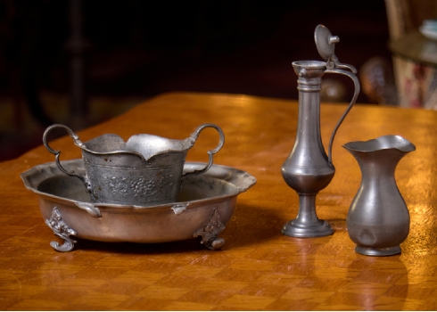 לקערה חסרות ידיות, לאחד הכלים פגם מעיכה לבסיסקוטר הקערה הגדולה 30 ס"מגובה הקנקן הגבוה 25 ס"מ