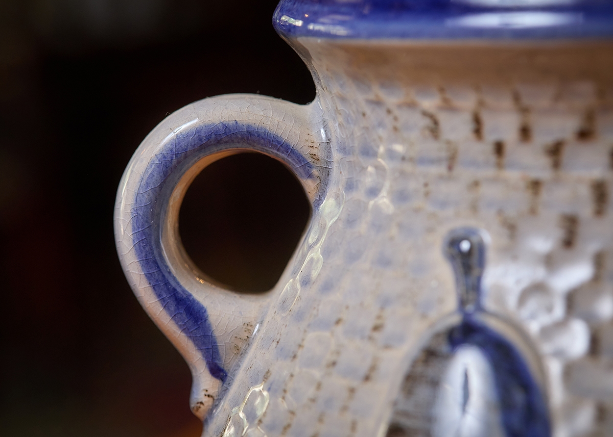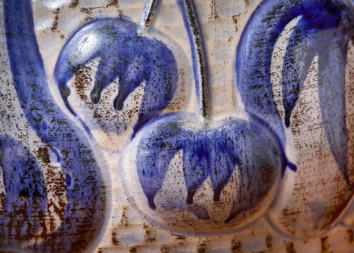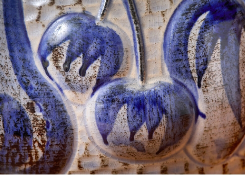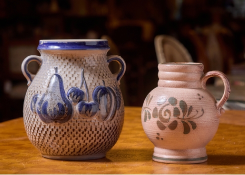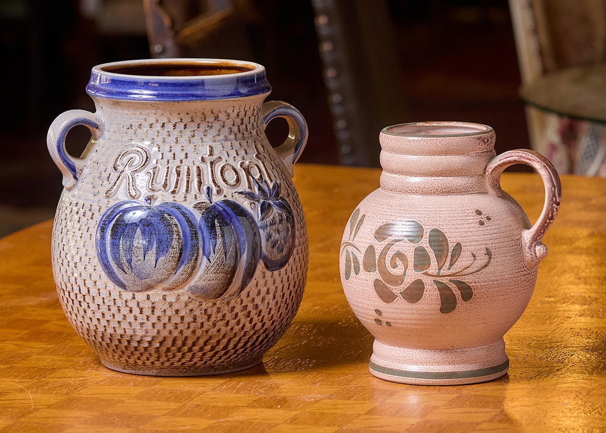 שני כלי קרמיקה למטבח מעוטרים בצביעת יד וחתומים