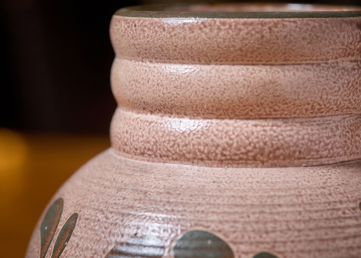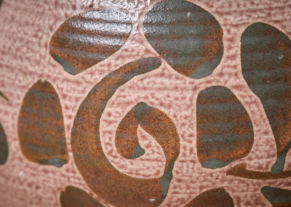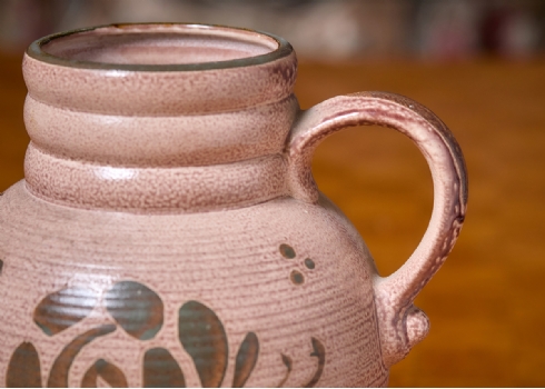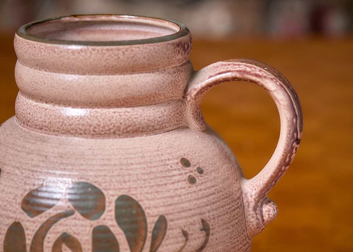 שני כלי קרמיקה למטבח מעוטרים בצביעת יד וחתומים