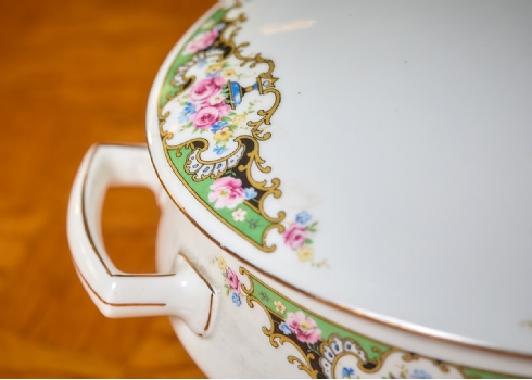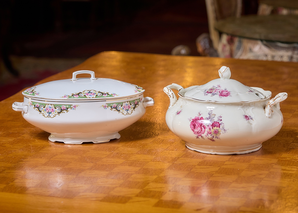 2 מרקיות פורצלן מעוטרות וחתומות, דגמים ויצרנים שונים