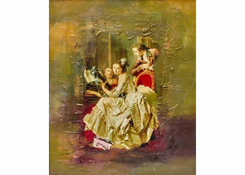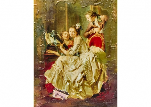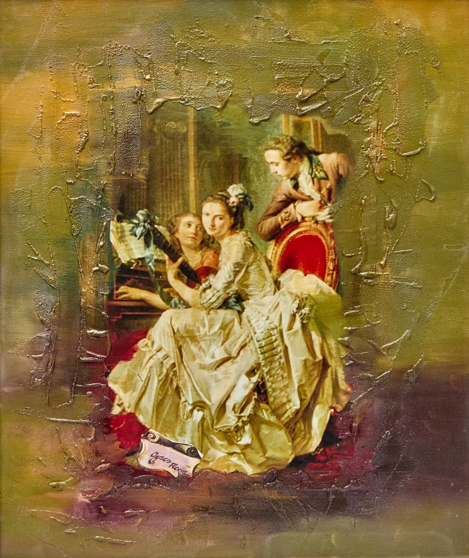 'הקונצרט' טכניקה מעורבת על גבי הדפס