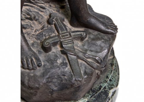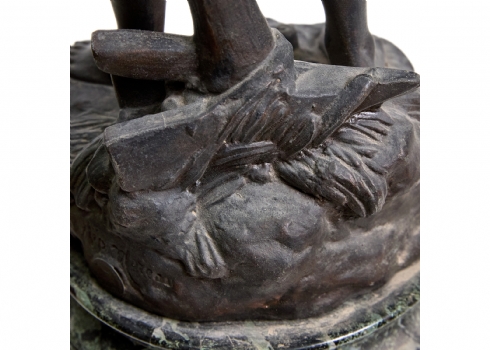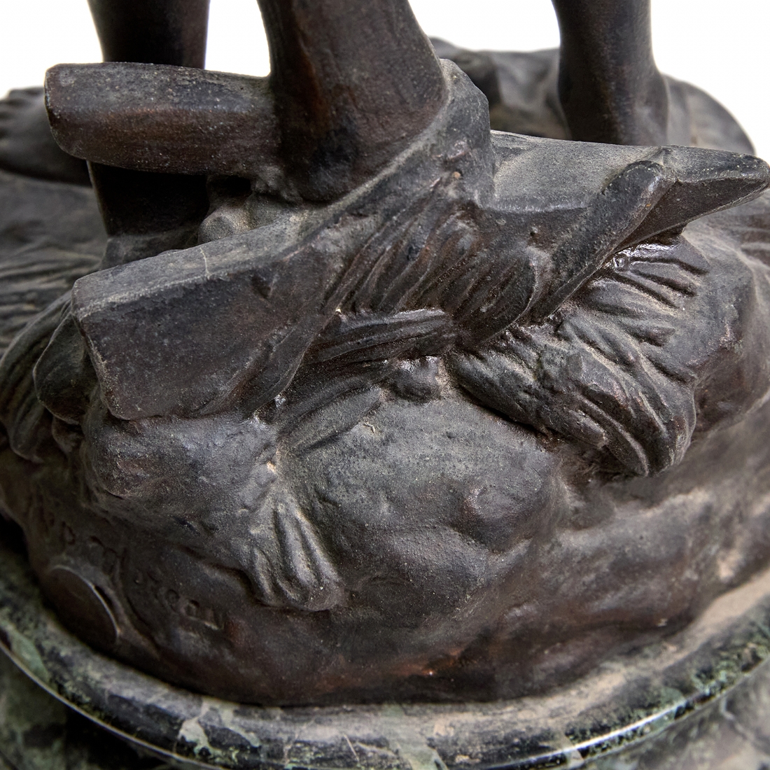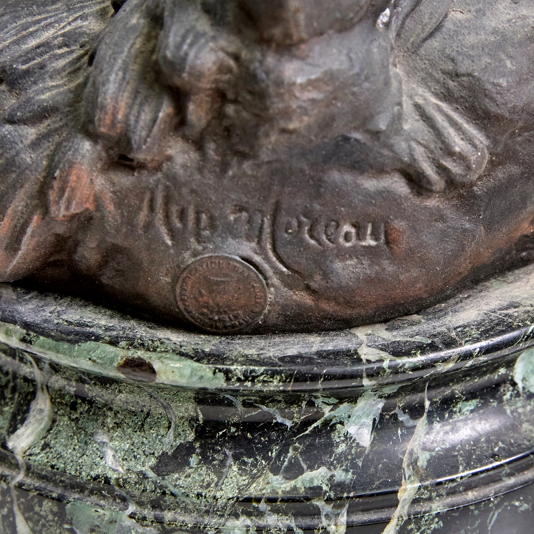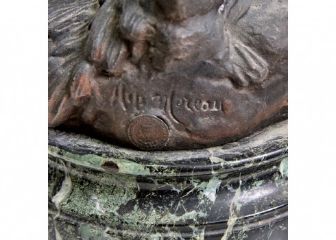 נושא לוחית:'Pax + Labor per Hip. Moreau'. חתום 'Hip. Moreau' וחותמת בית יציקה פריזאי, פטינה שחורה