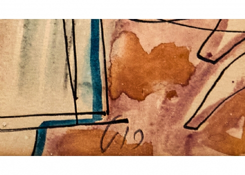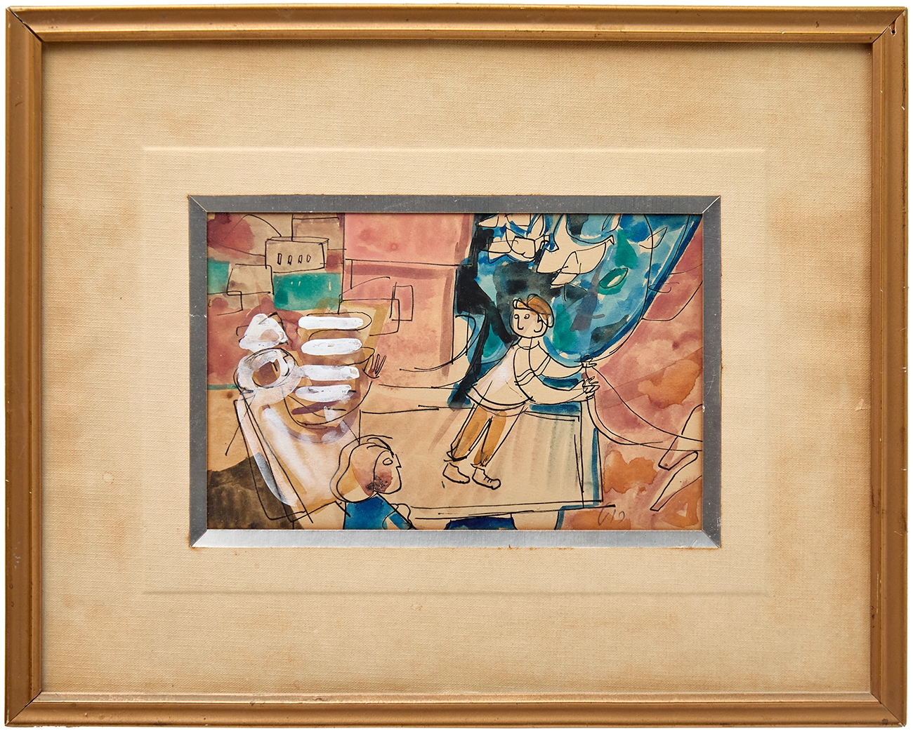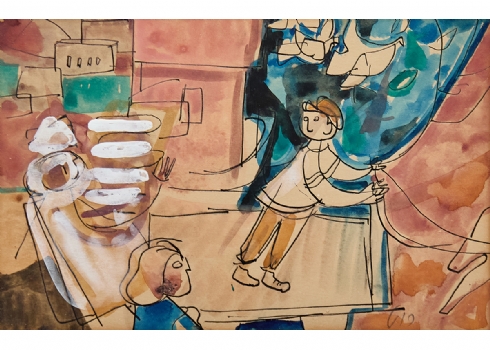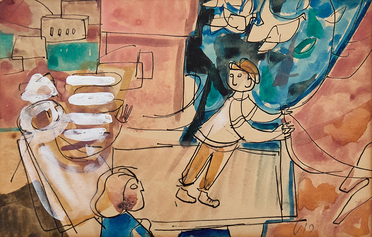 ליאו רוט (Leo Roth) – 'נער מפריח יונים לבנות' – רישום בדיו, אקוורל וגואש על נייר