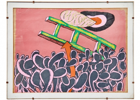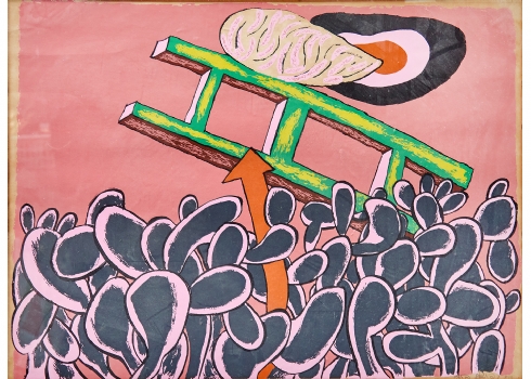 נפתלי בזם (Naftali Bezem) – 'סולם ירוק מכונף מעל שיח צבר ורוד'