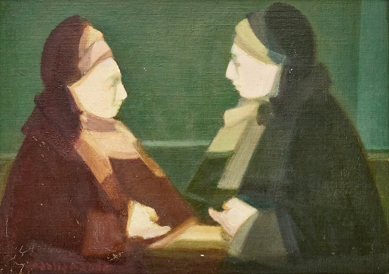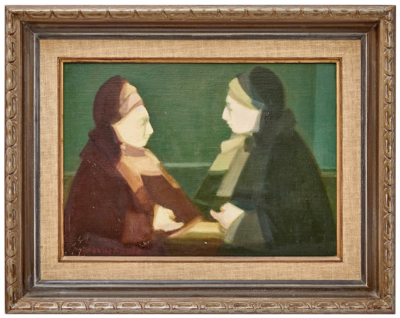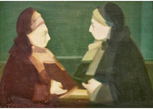 אברהם גולדברג - 'שתי נשים', שמן על בד צרפתי חתום