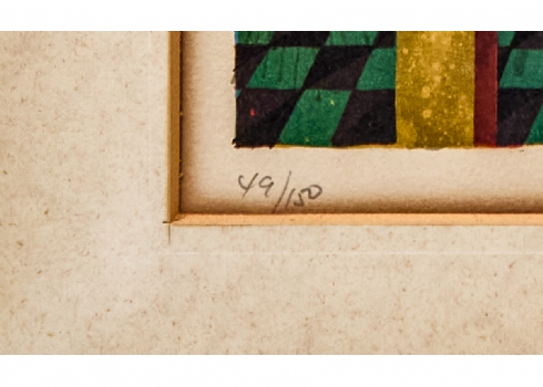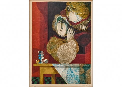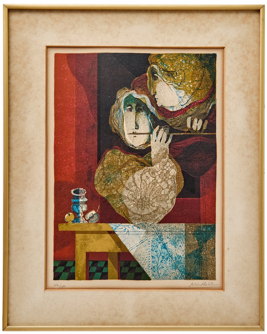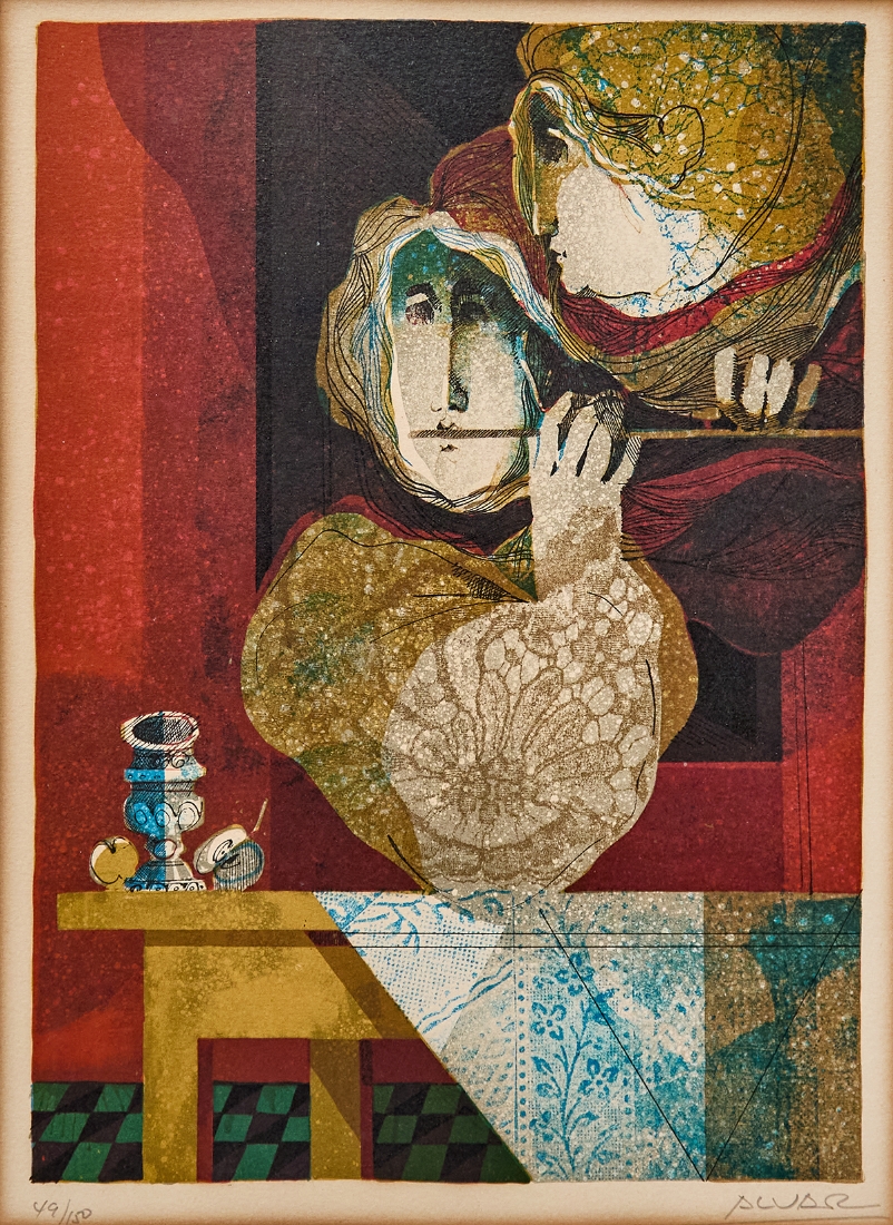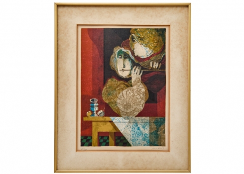אלוואר סוניול (Alvar Suno) - 'אישה מחללת ליד פמוט ותפוח', ליטוגרפיה חתומה בעפרון