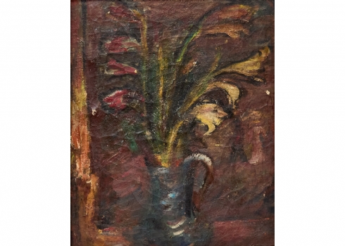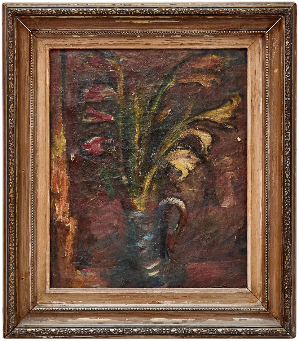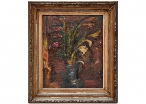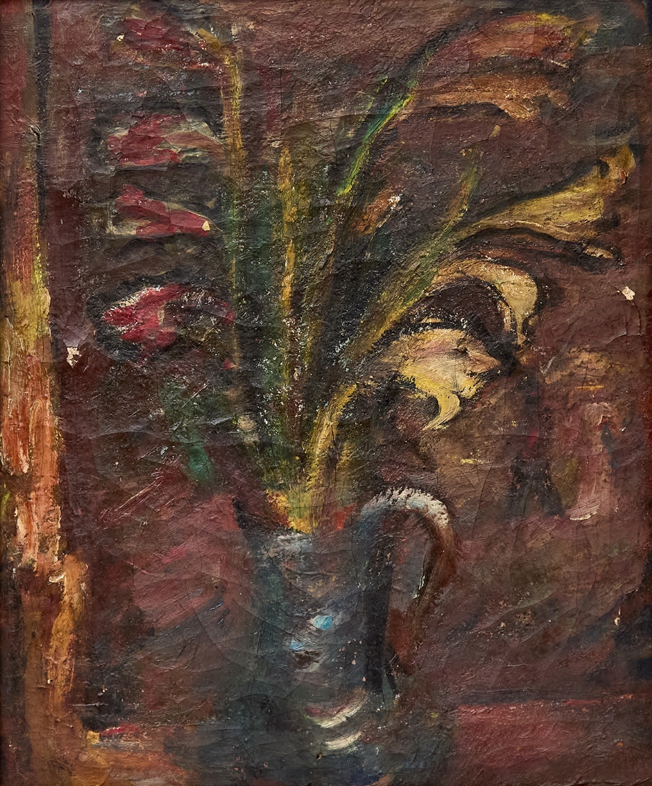 יחזקאל שטרייכמן (Yehezkel Streichman) 'פרחים בכד כחול', שמן על בד