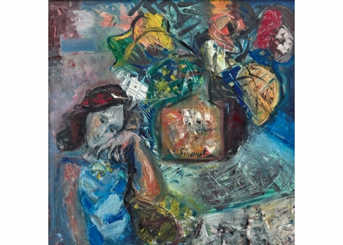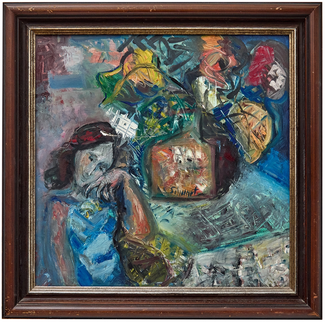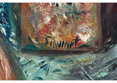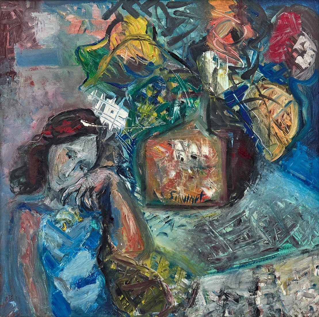 שלמה שוורץ (Shlomo Shwartz) - 'אישה חולמנית בכחול', שמן על בד, חתום