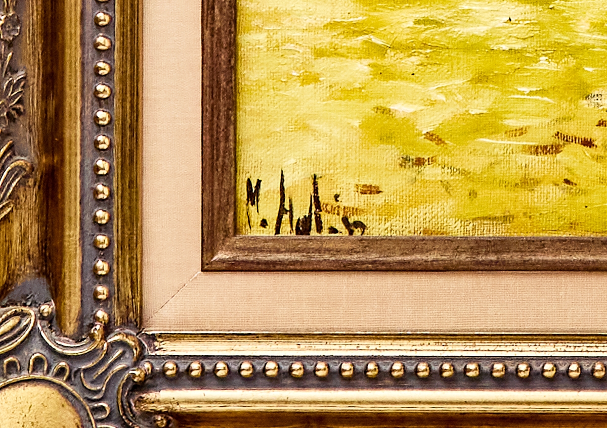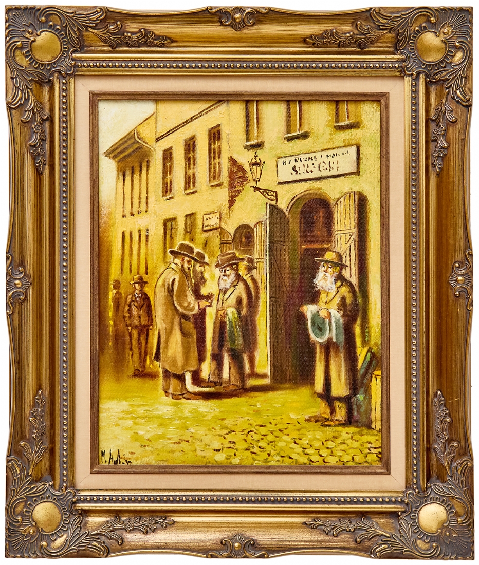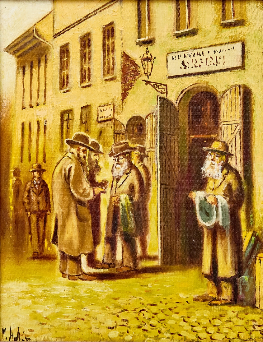 'יהודים בפתח בניין'- שמן על בד, חתום