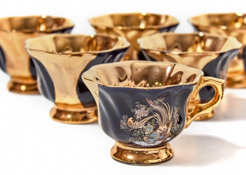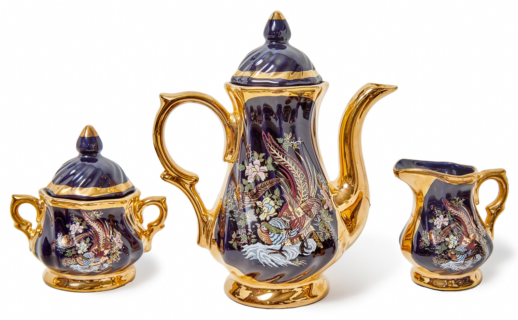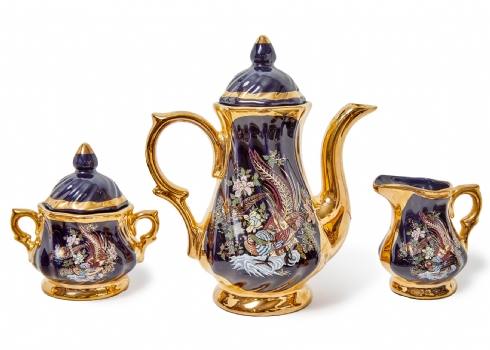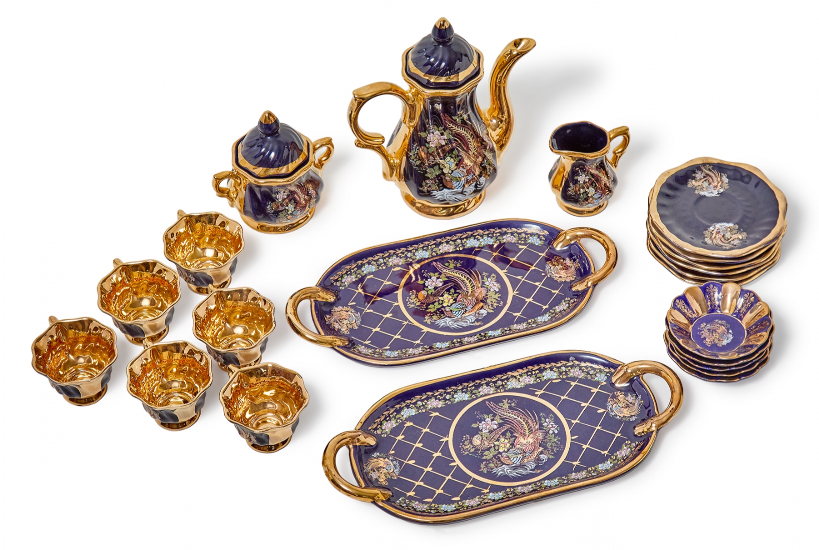 הסט כולל:6 ספלי קפה (6 ס"מ) + תחתיות תואמותקנקן קפהכלי חלב : 10 ס"מכלי סוכר2 מגשים: 37 ס"מ5 קעריות קטנות