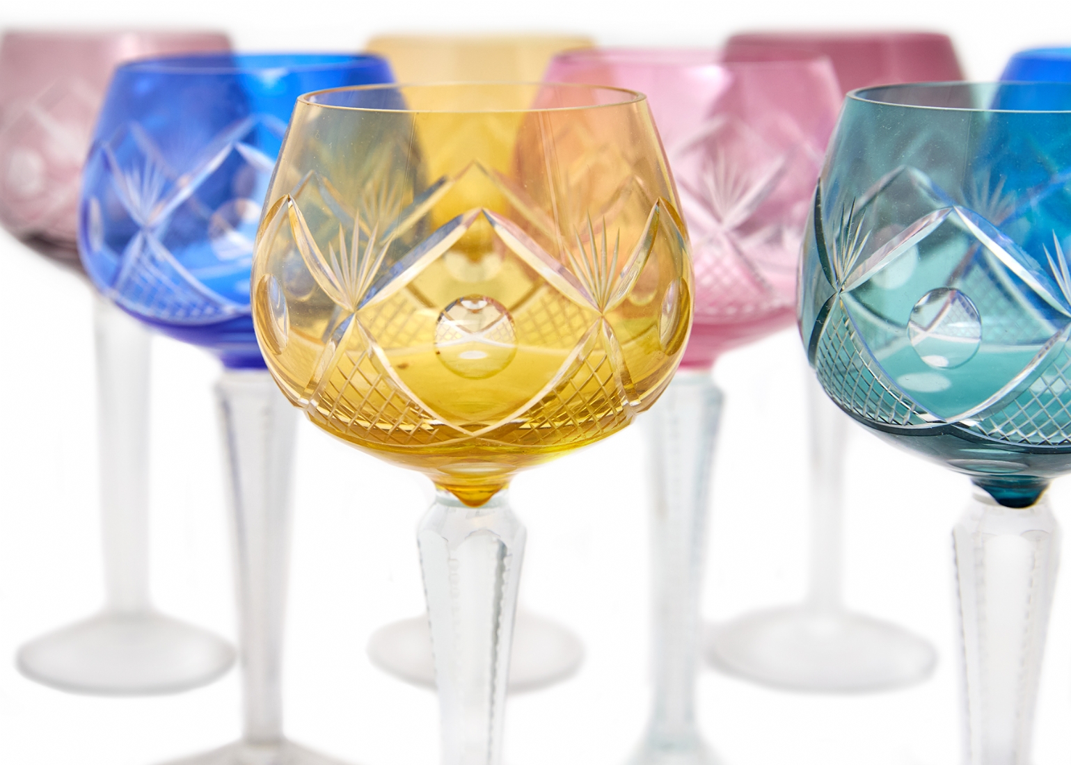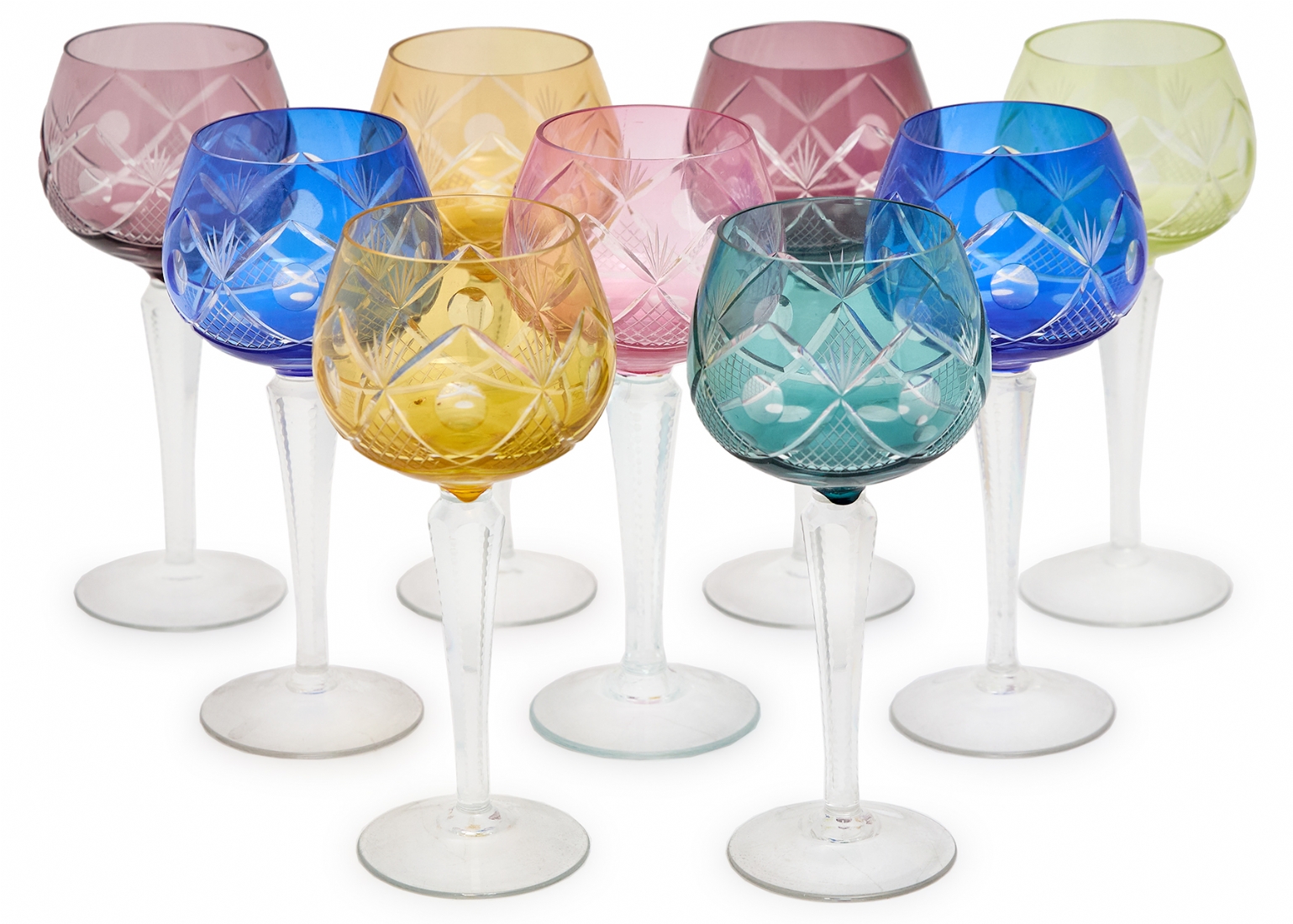 9 גביעי קריסטל צבעוניים עשוים קריסטל מלוטשים בעבודת יד