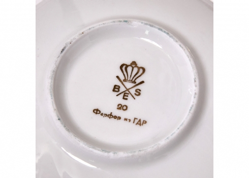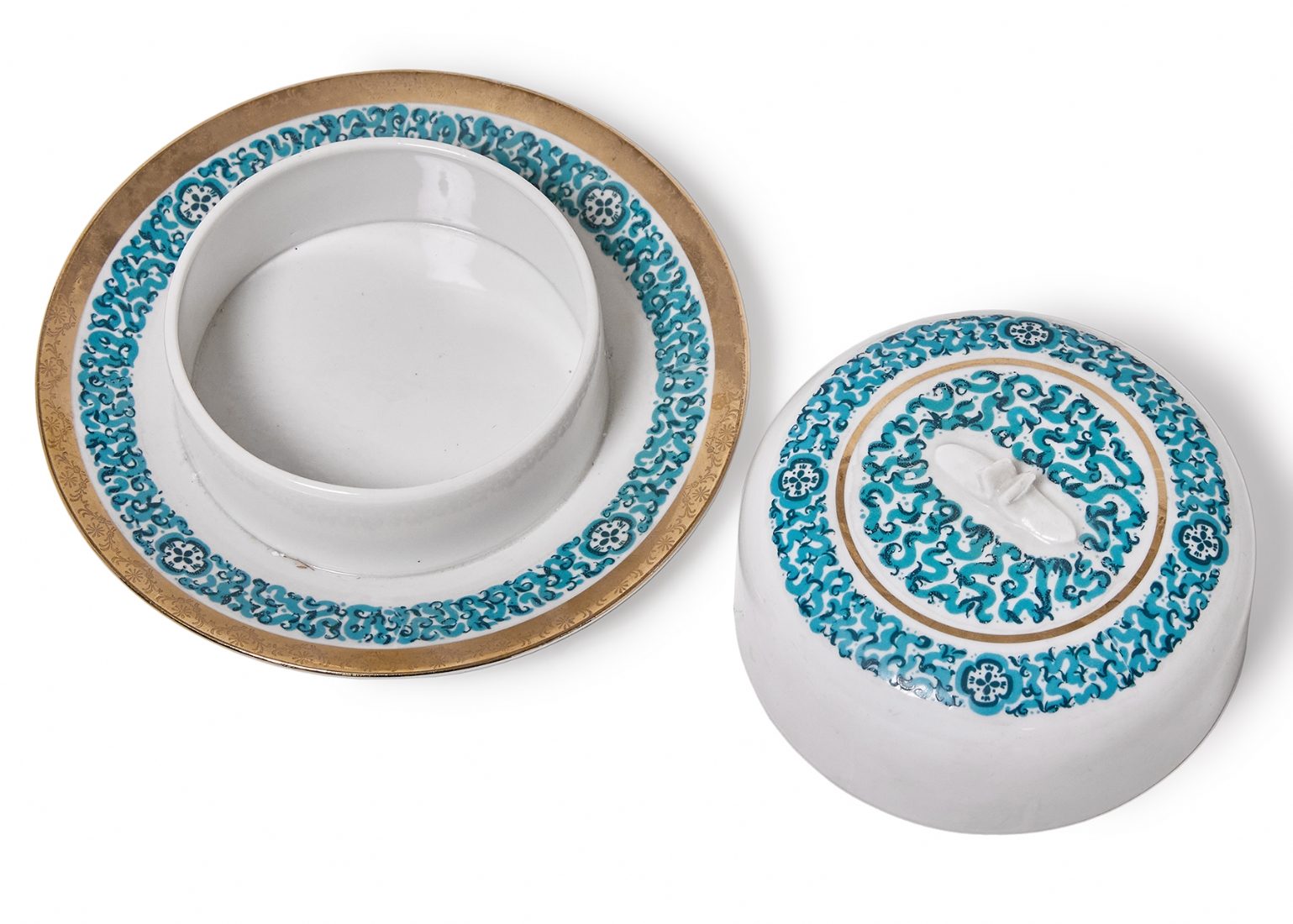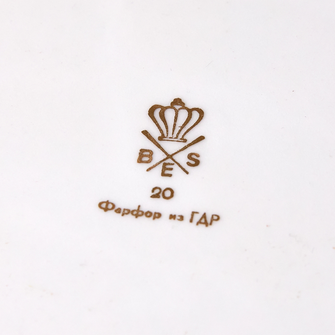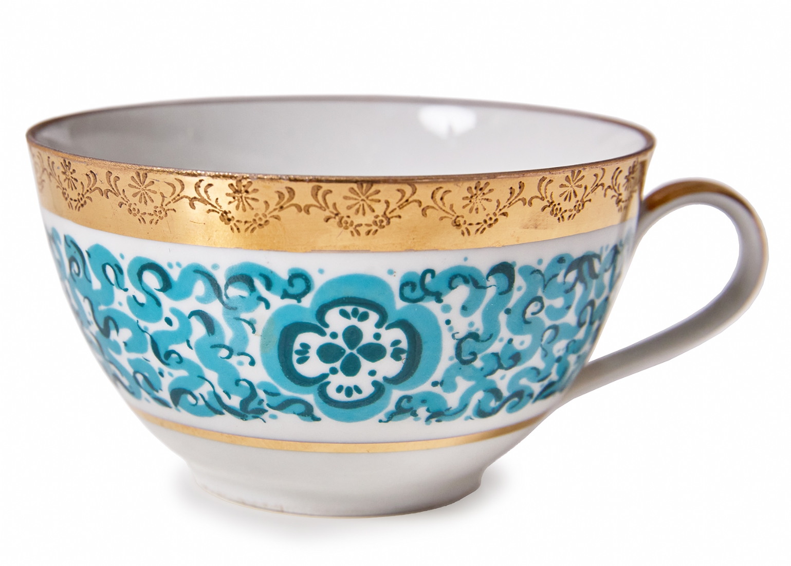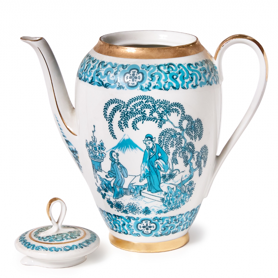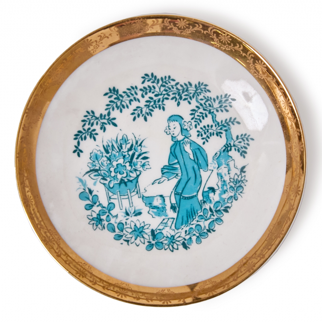 חלקי סט פורצלן סובייטי מעוטר באמייל תכלת וזהב חתום