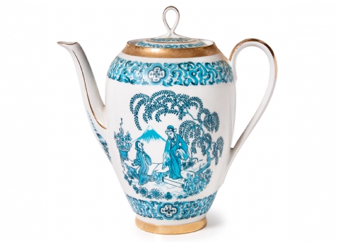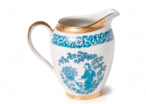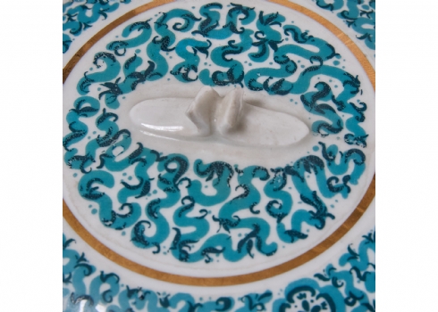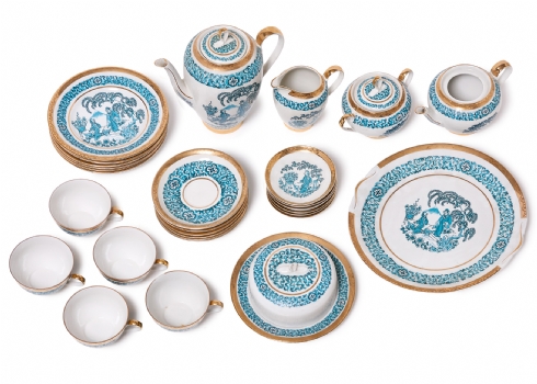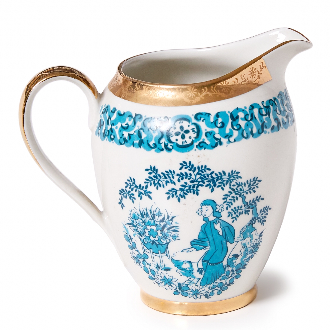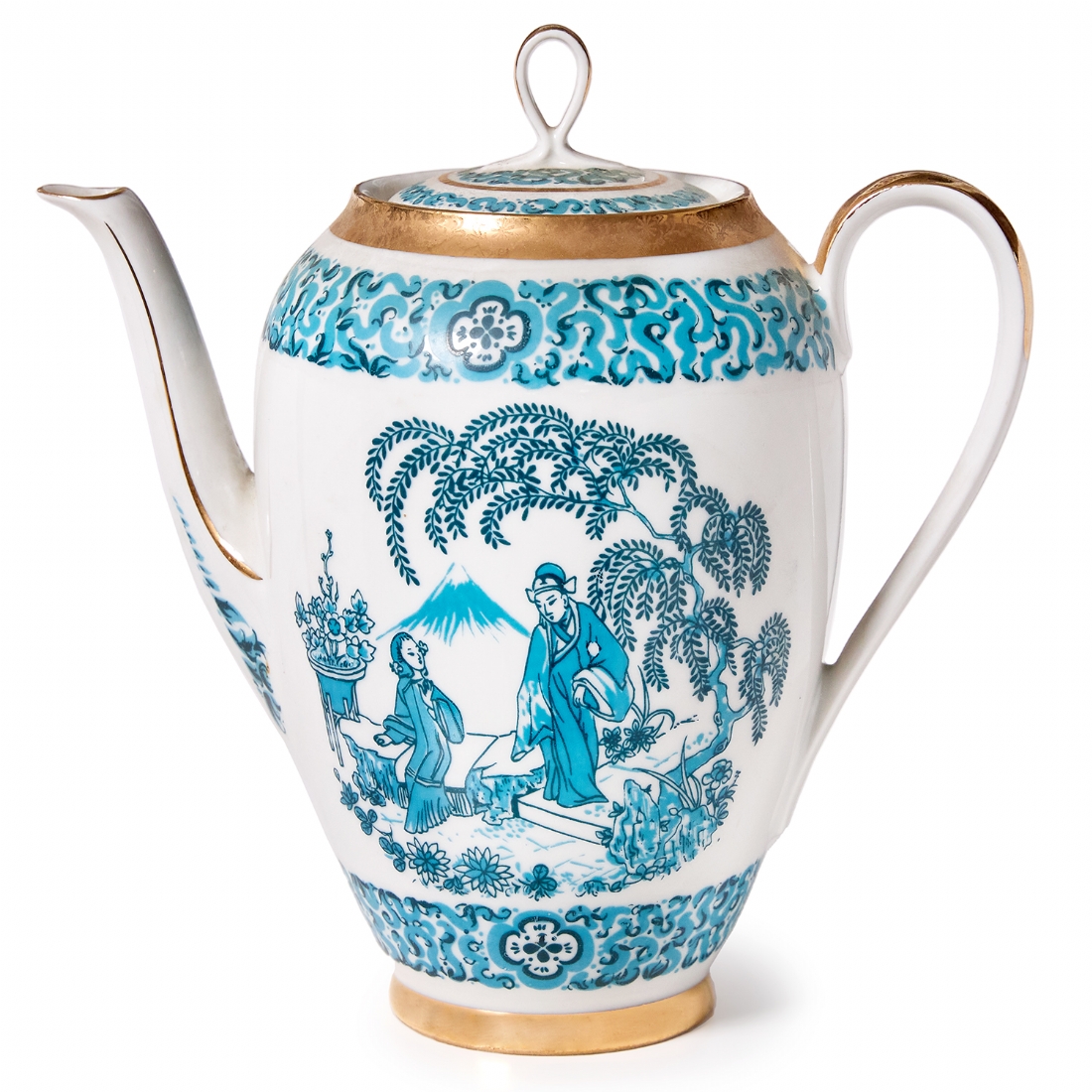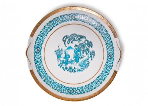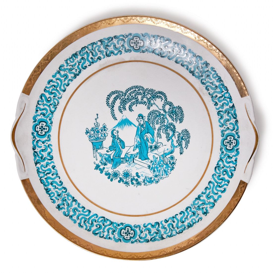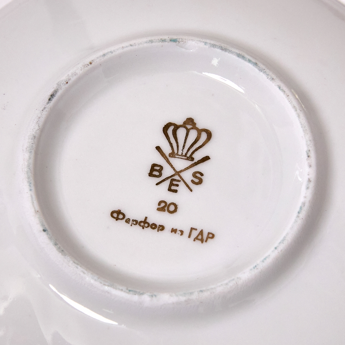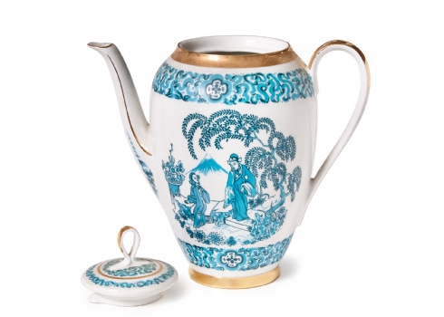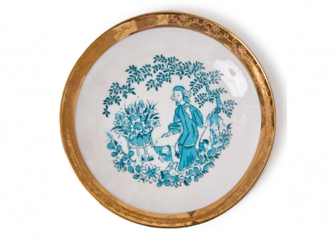 חלקי סט פורצלן סובייטי מעוטר באמייל תכלת וזהב חתום