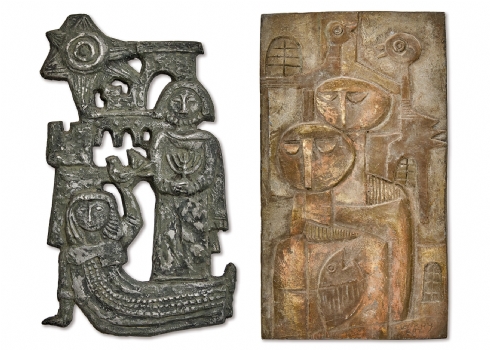 אחד מלבני, חתום Lankri Artמידות: 29.5X16.5 ס"מתבליט מתכת עשוי בדיל, חתום Sabin (סמי סבין בז’רנו)מידות: 36X22 ס"מ