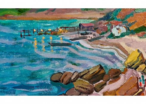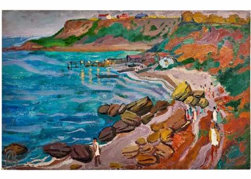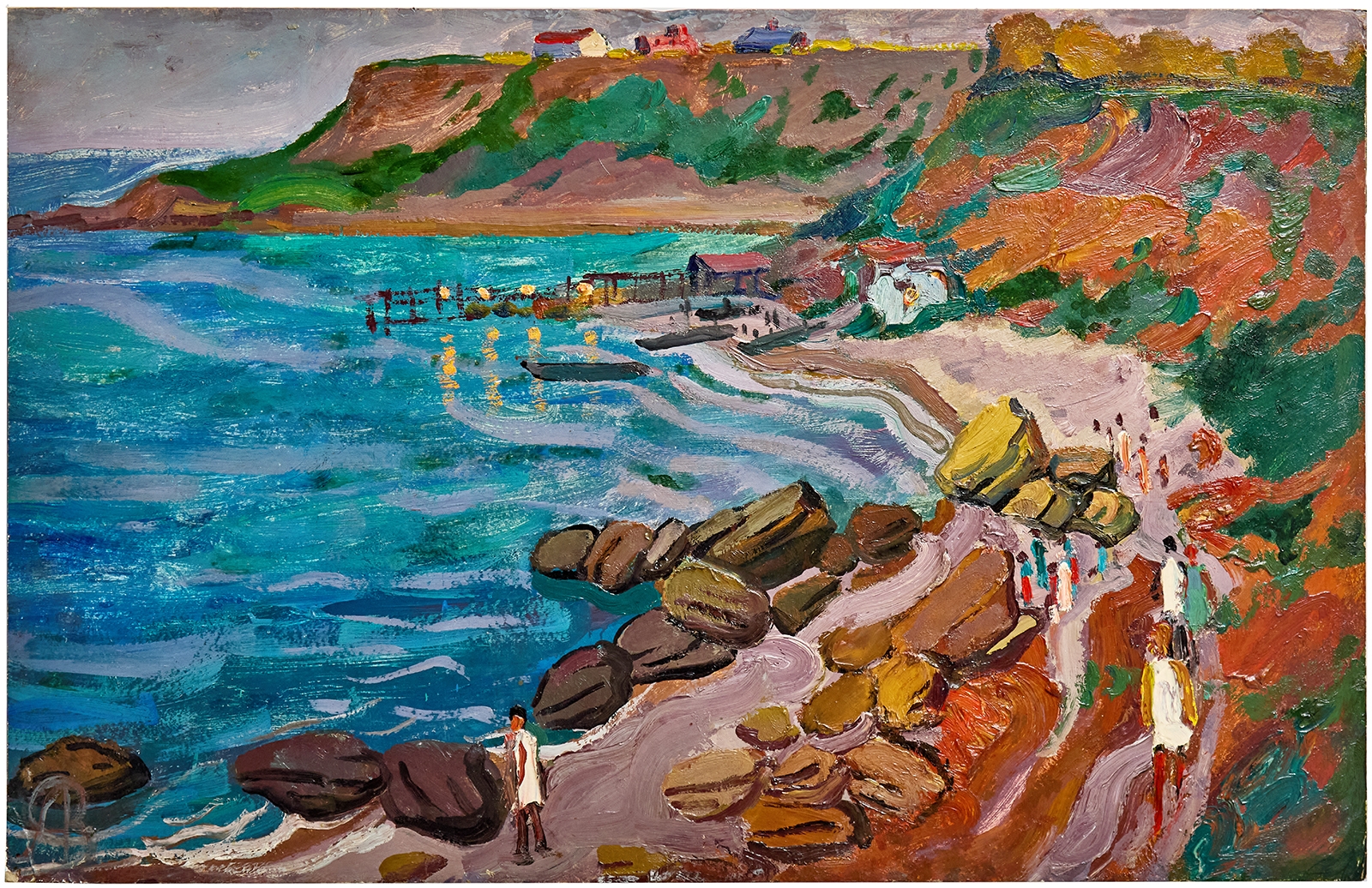 אנה זילברמן (Anna Zilberman, 1935-2000) 'דמויות ליד מזח במפרץ'