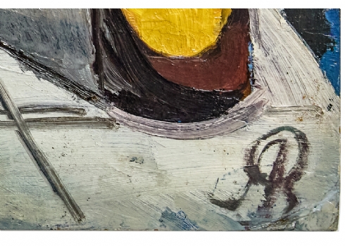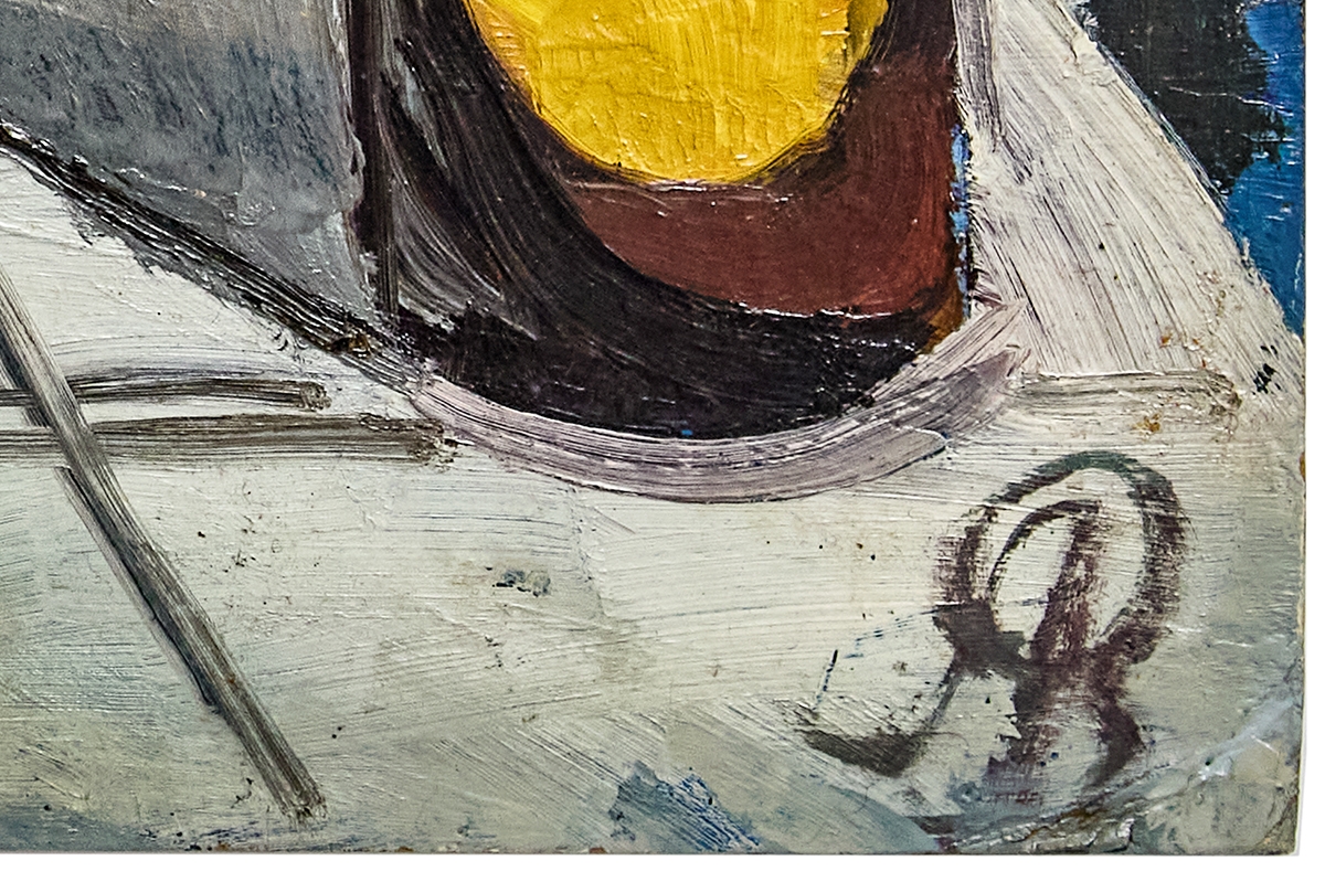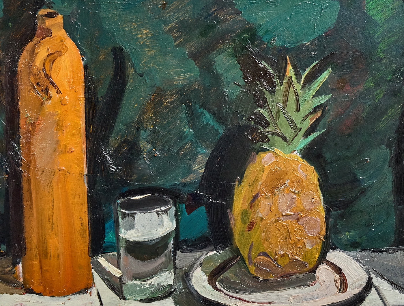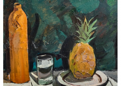 אנה זילברמן (Anna Zilberman, 1935-2000) 'טבע דומם עם אננס ובקבוק יין'