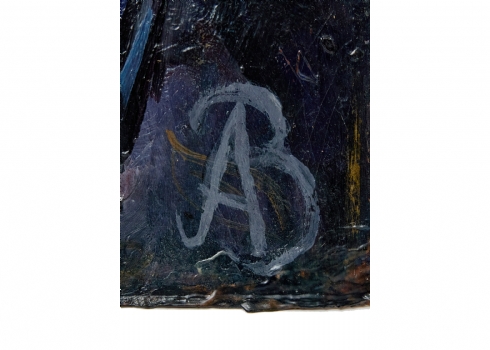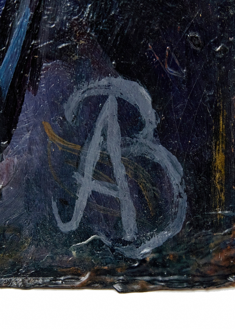 שמן על בד מוצמד ללוח, לא ממוסגר