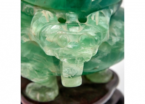 עשוי סרפנטיין (Serpentine), מגולף ביד ובסיס עץ