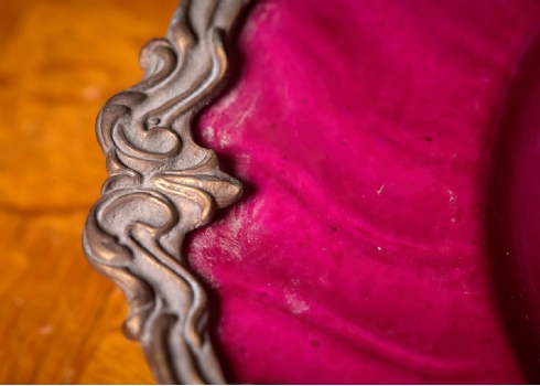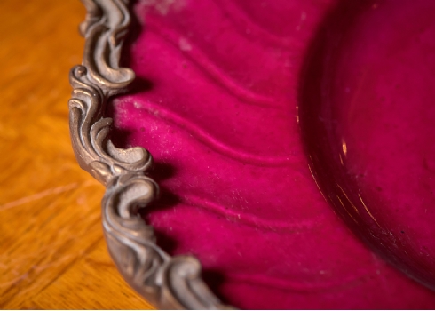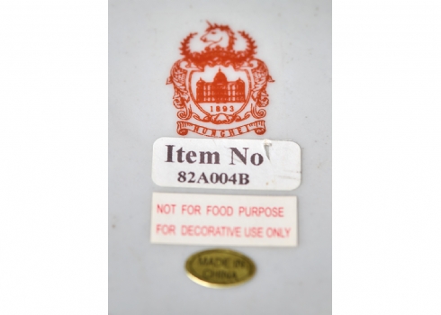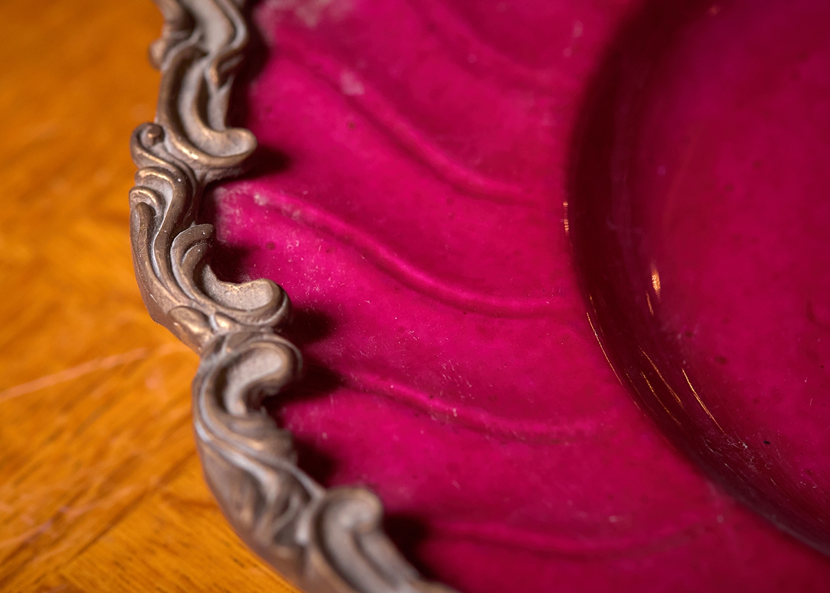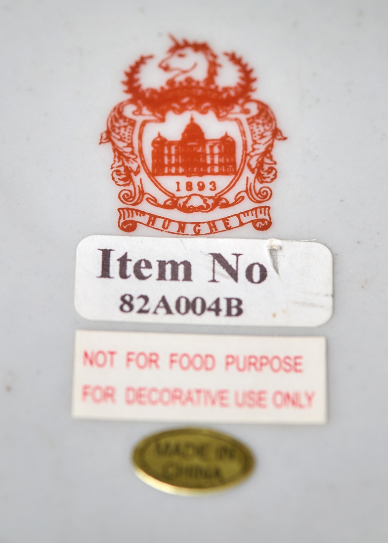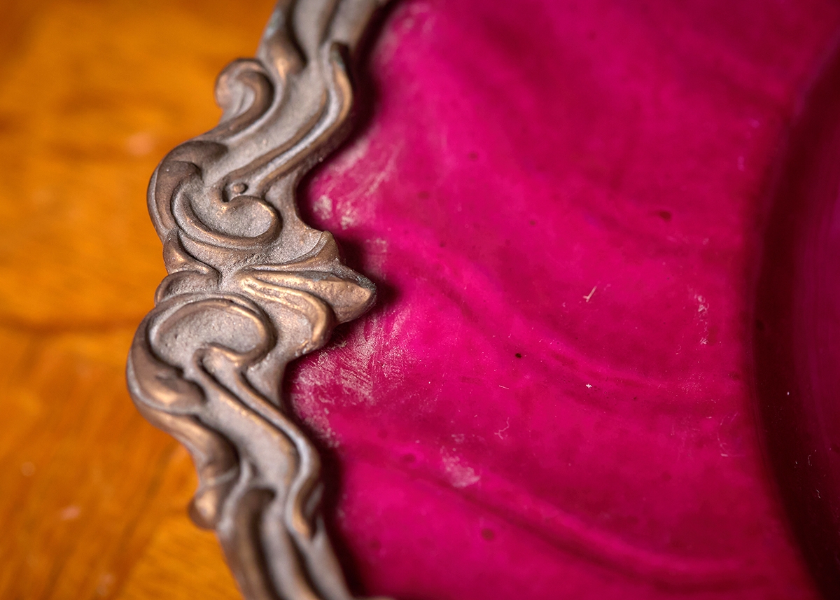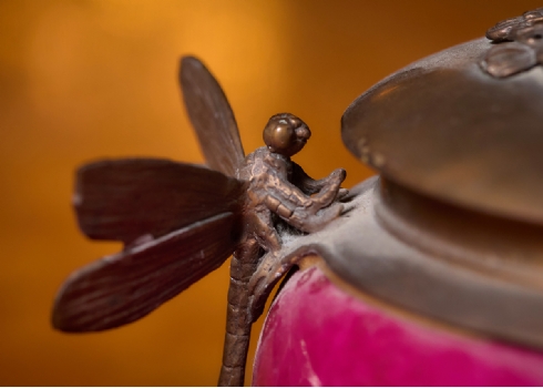 זוג כלי נוי עשויים חרסינה מעוטרים אמייל בגוון ורוד והתקני מתכת
