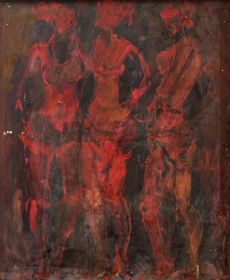 מאיר שטיינגולד (Meir Steingold) – 'שלוש נשים באדום' – שמן על בד, חתום