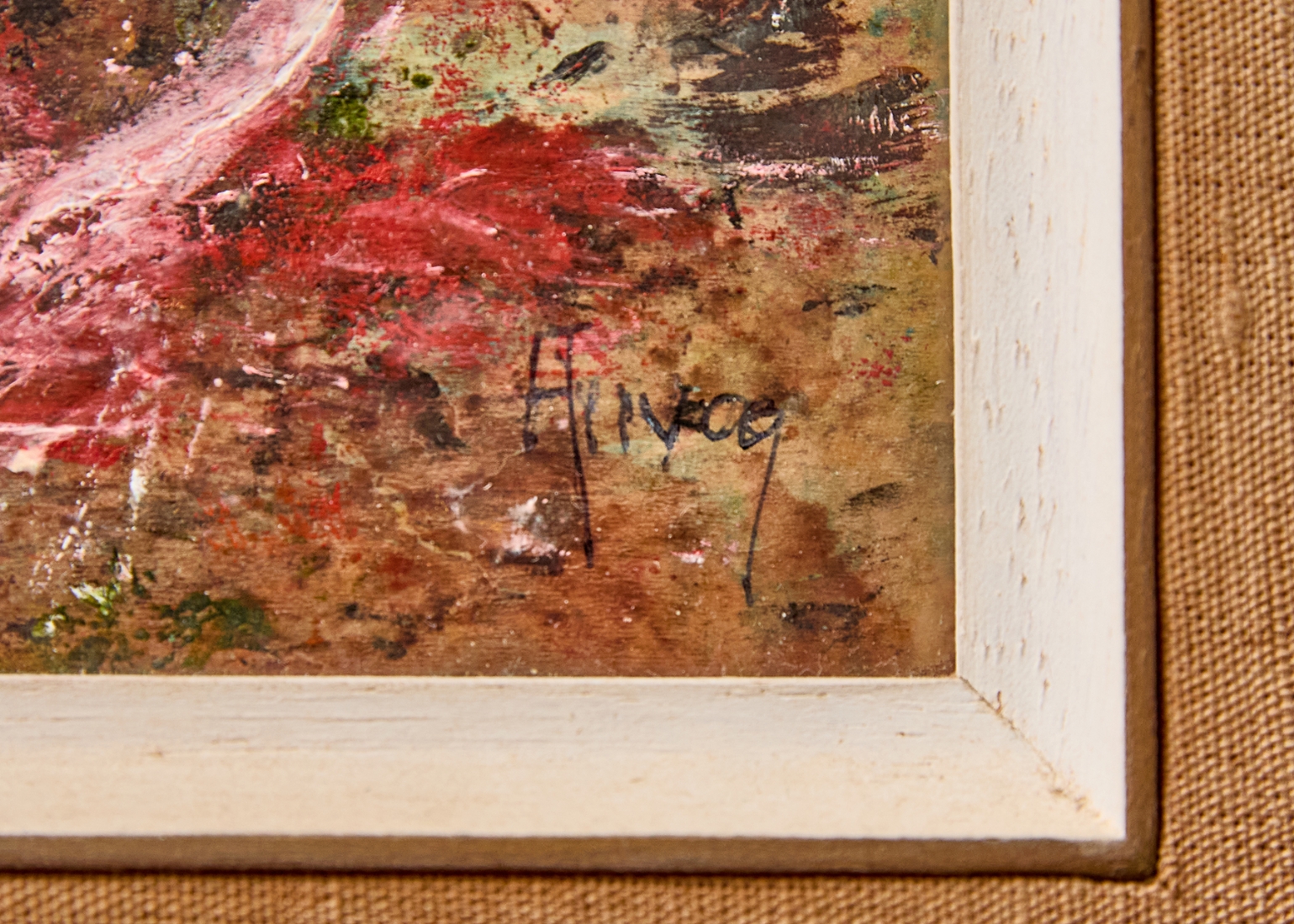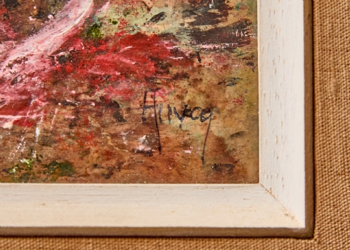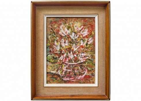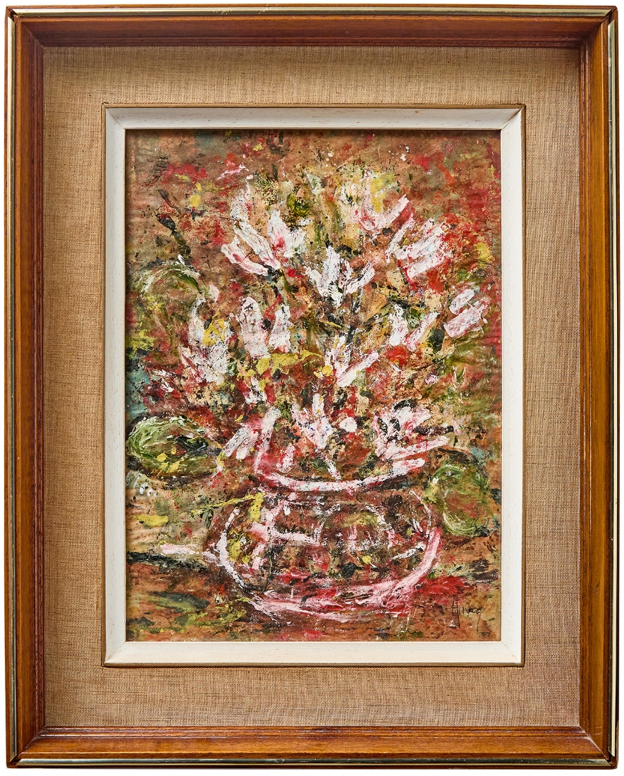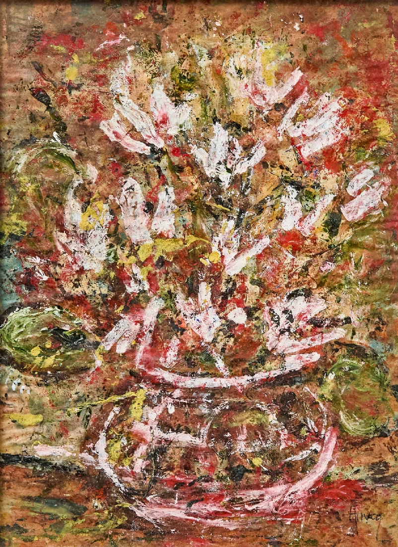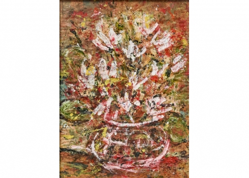 'רקפות בכד', שמן על נייר חתום