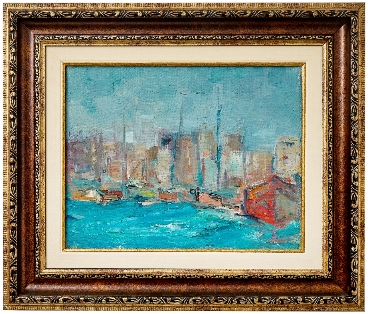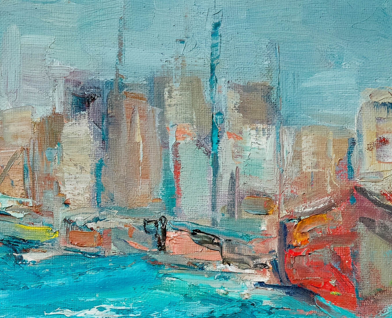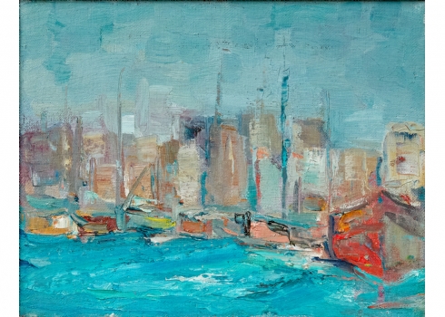 'סירות במעגן', שמן על בד לא חתום