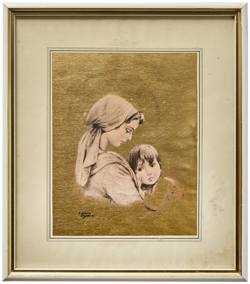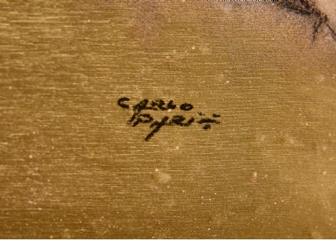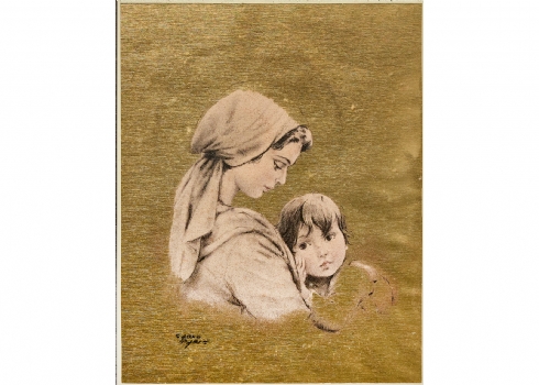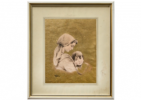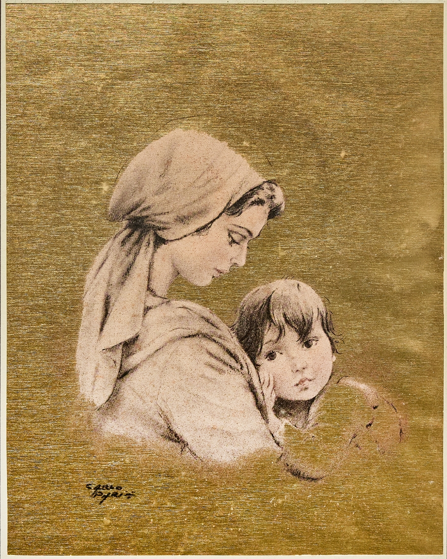 קרלו פריסי (Carlo Parisi) 'הילה אמהית', ציור על משטח מוזהב, חתום