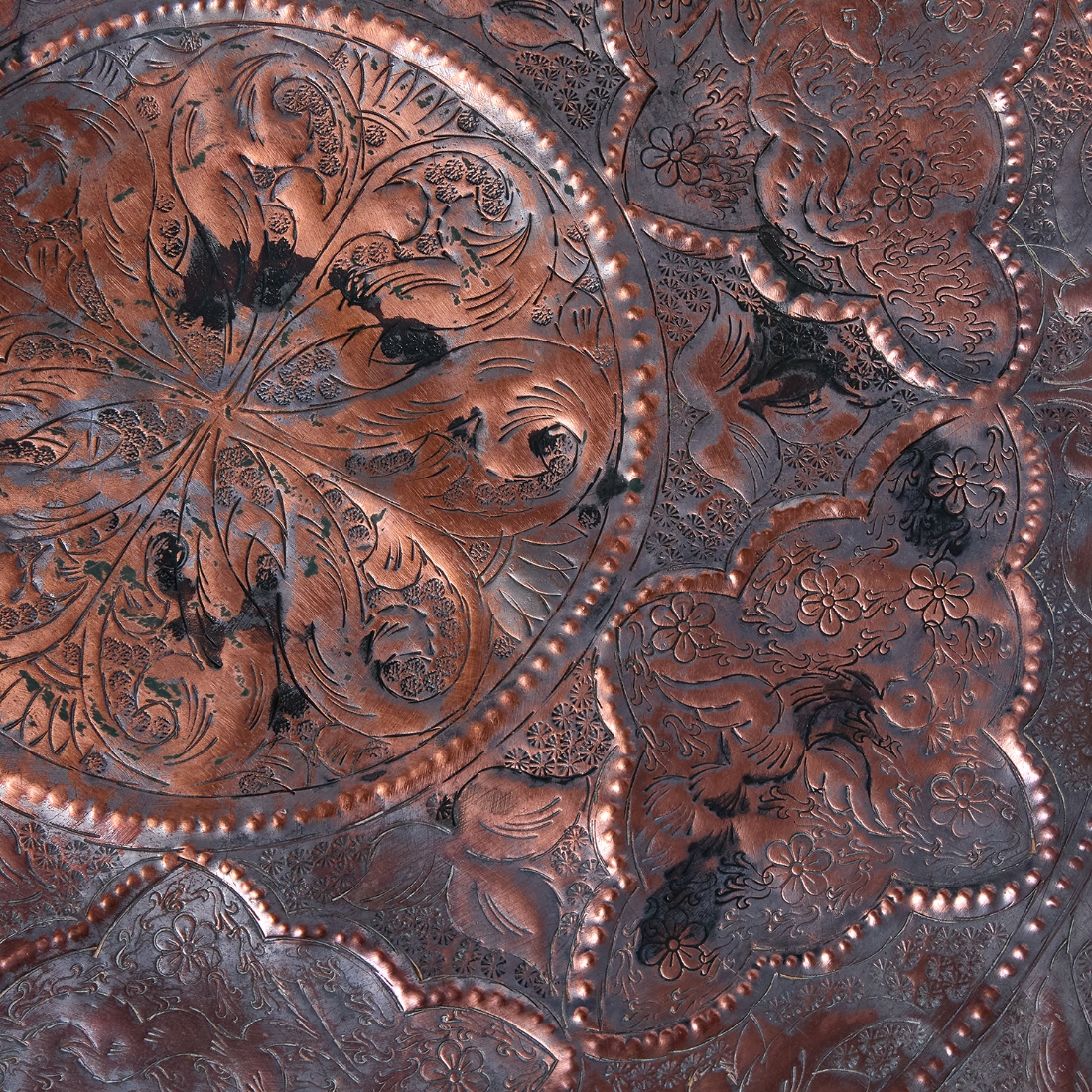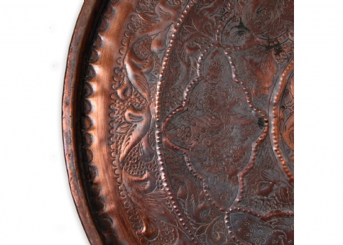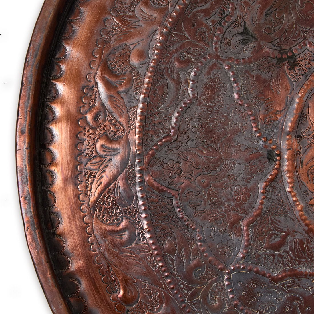 מגש פרסי עתיק בן מעל 100 שנה עשוי נחושת עשוי עבודת ריקוע ידנית בדגם ציפורים