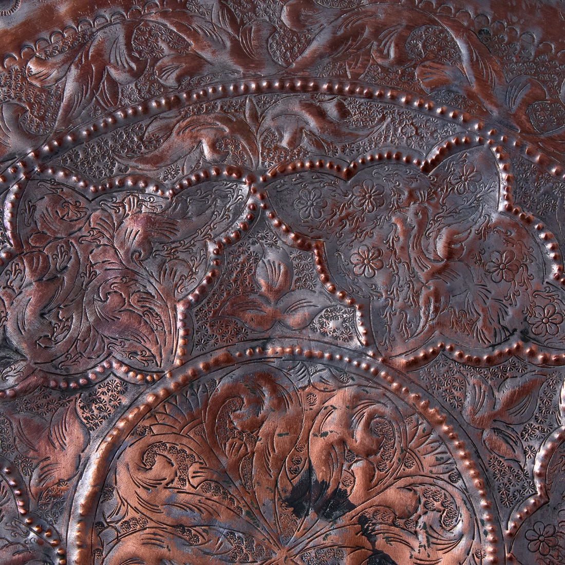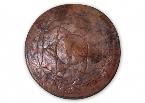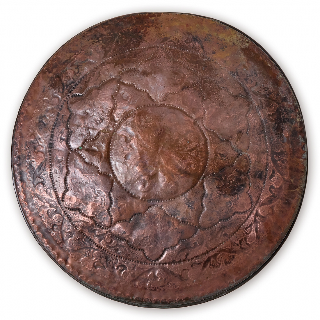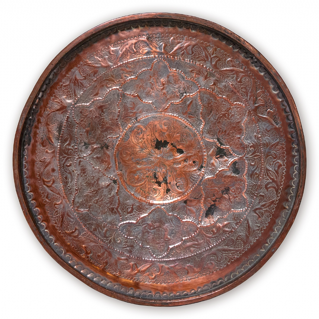 מגש פרסי עתיק בן מעל 100 שנה עשוי נחושת עשוי עבודת ריקוע ידנית בדגם ציפורים
