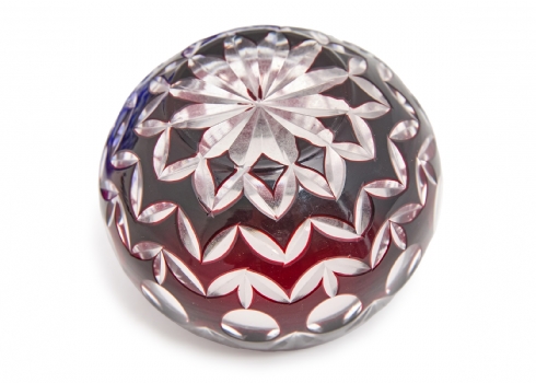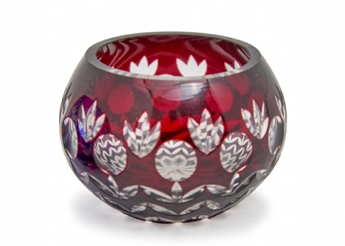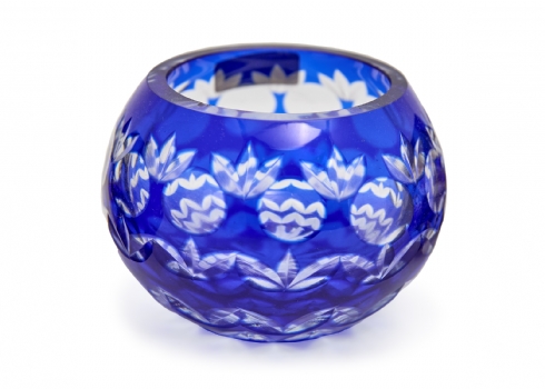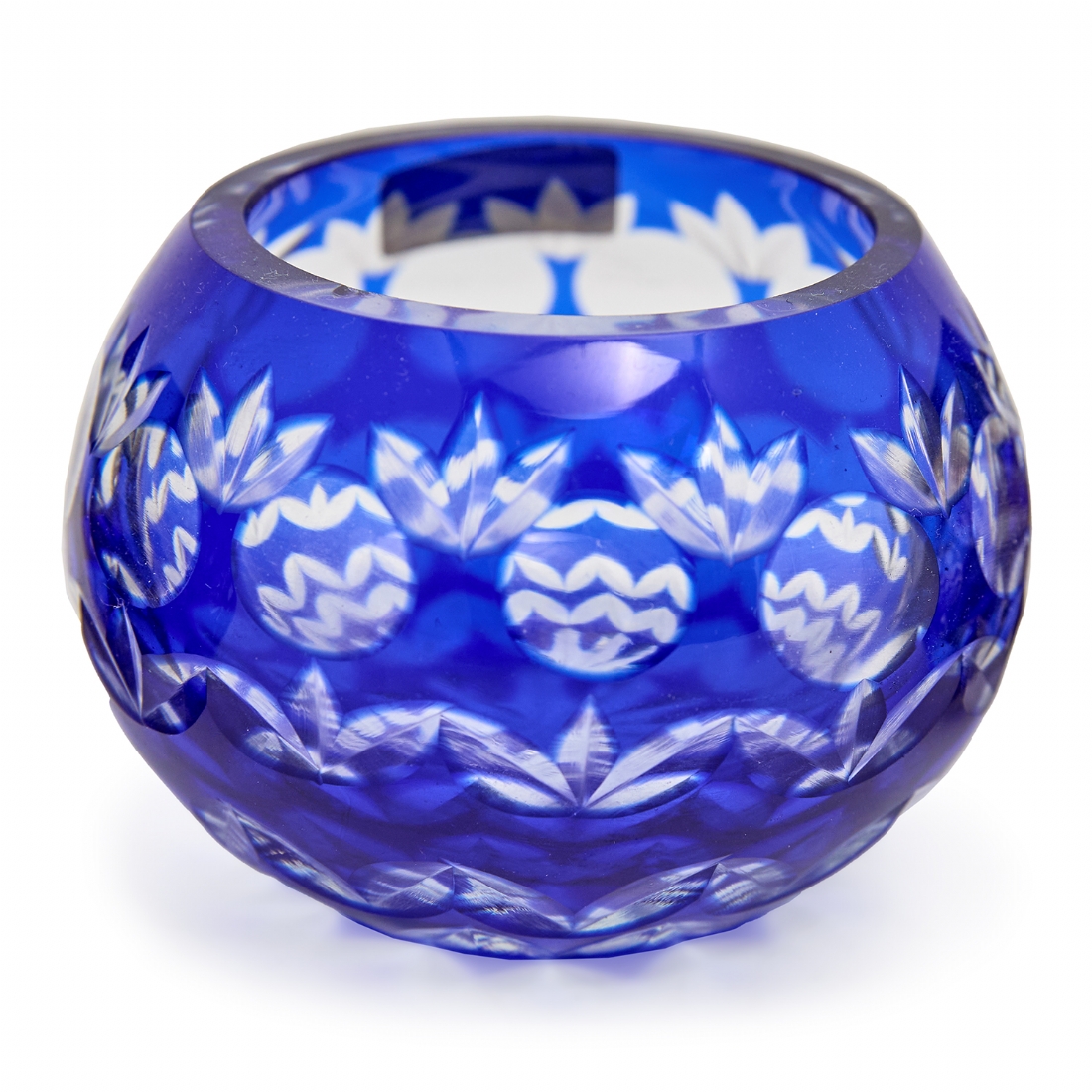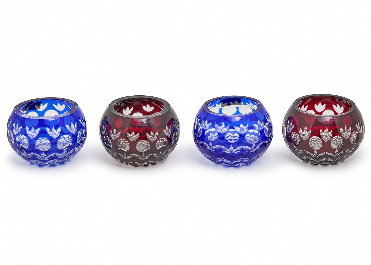 סט כלי קריסטל קטנים רומניים מלוטשים ביד בצבעי בורדו וכחול