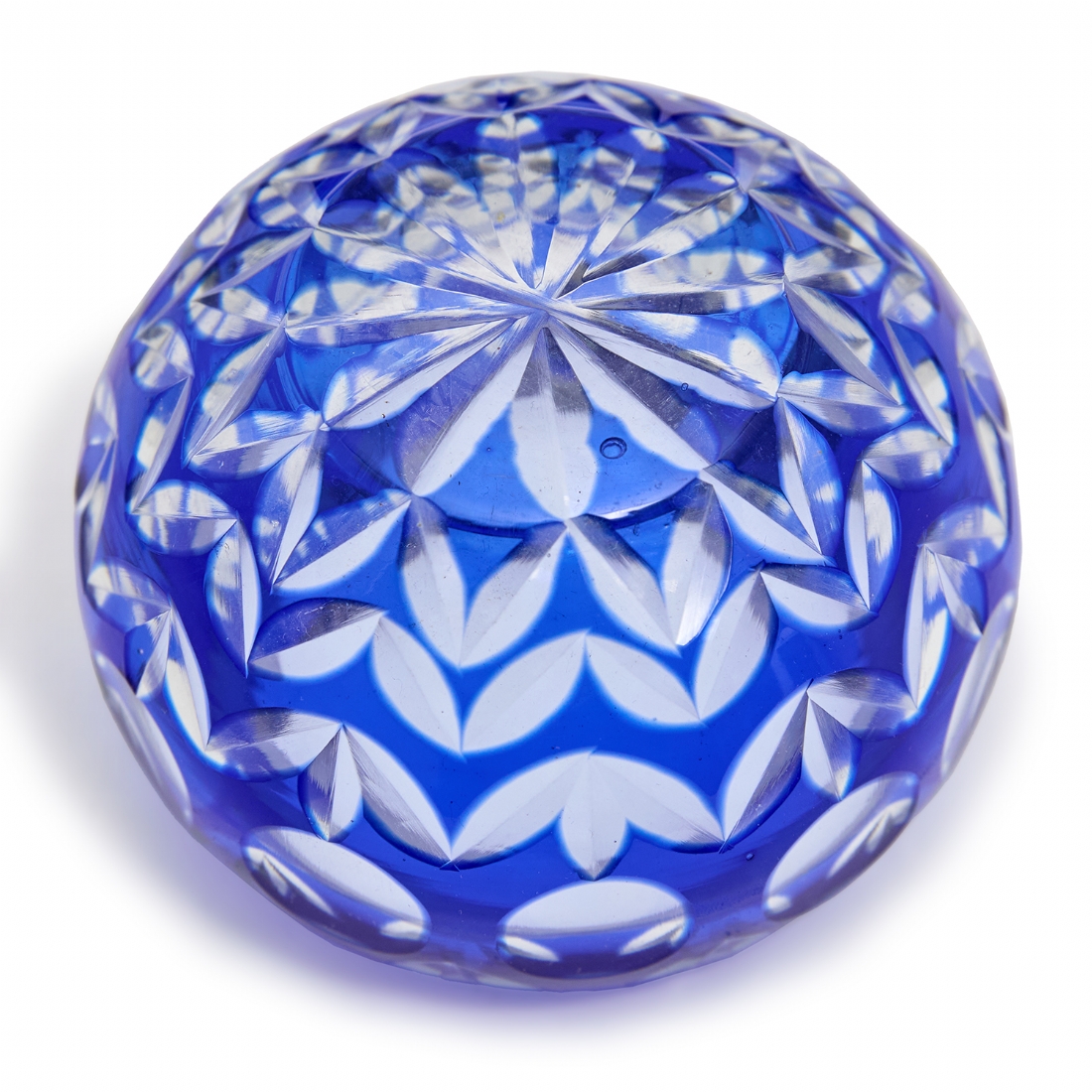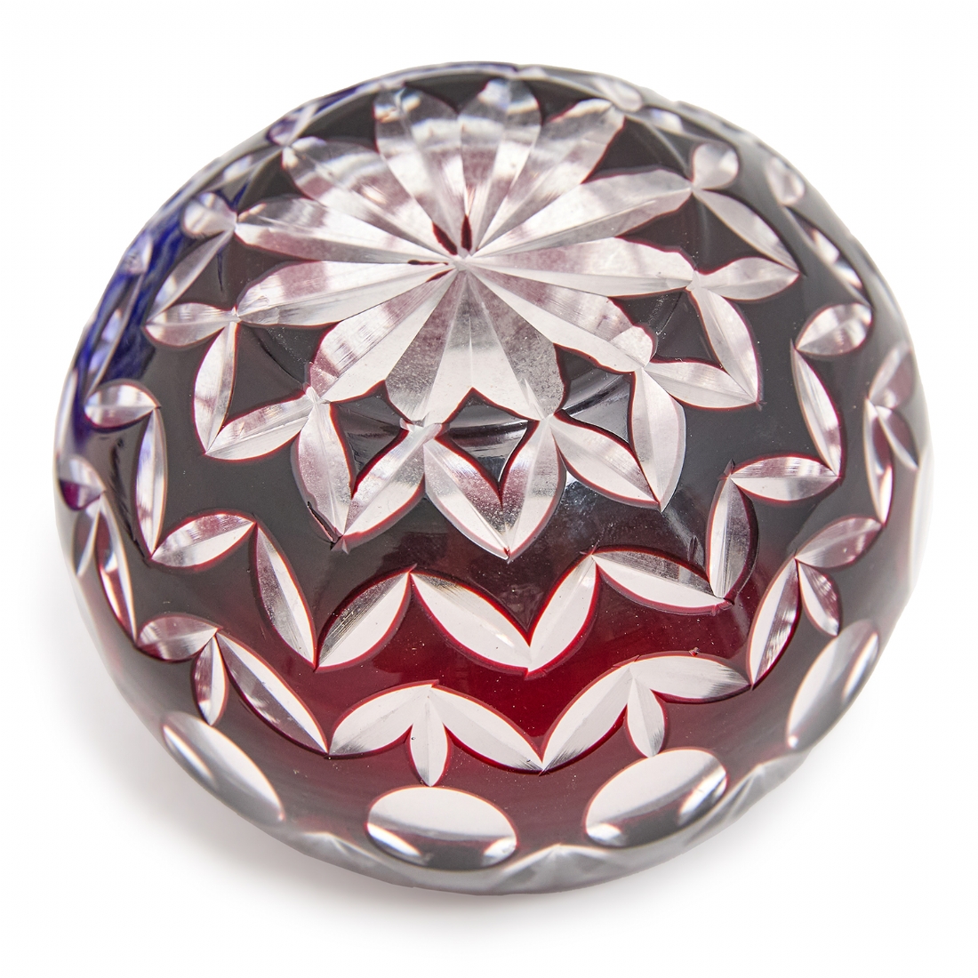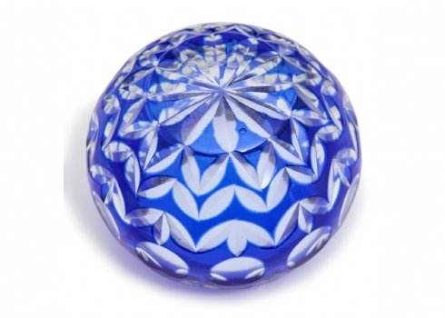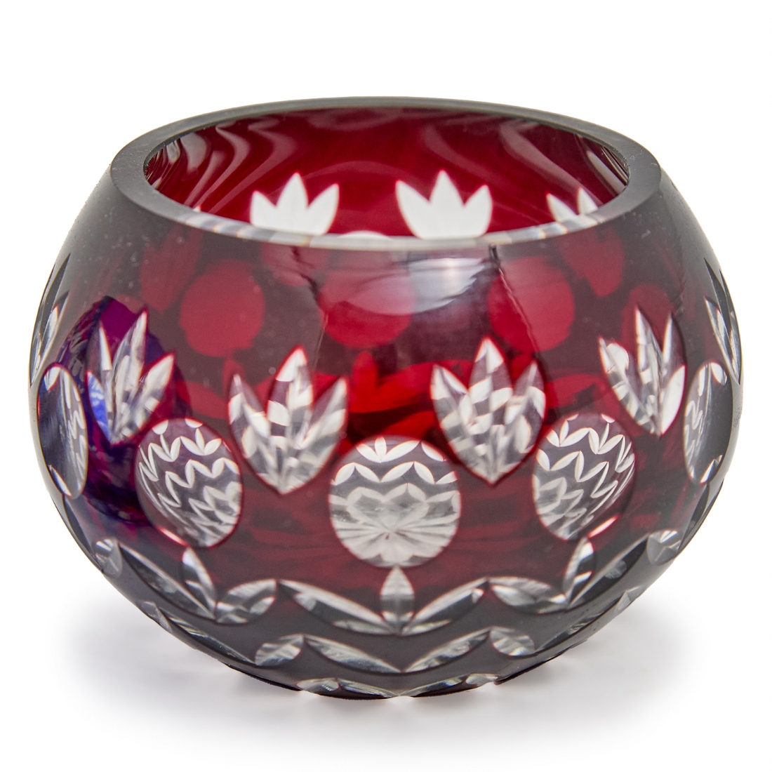 סט כלי קריסטל קטנים רומניים מלוטשים ביד בצבעי בורדו וכחול
