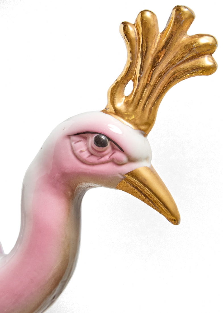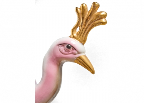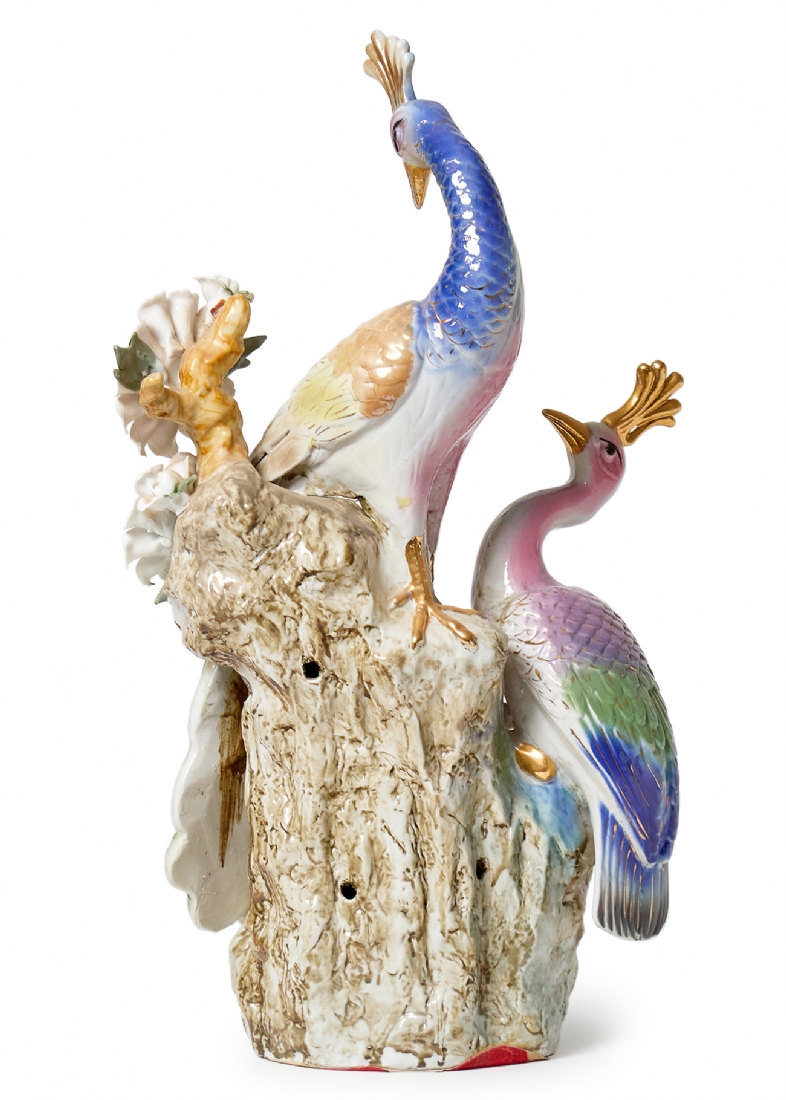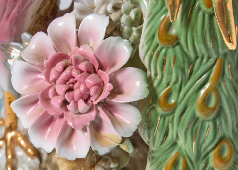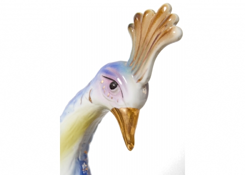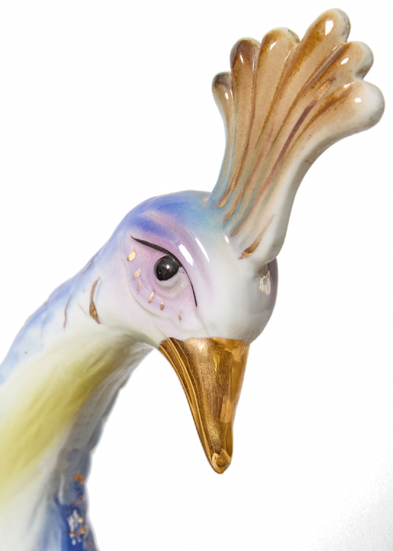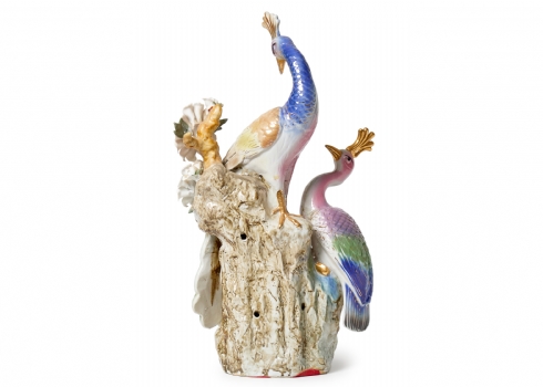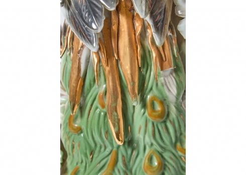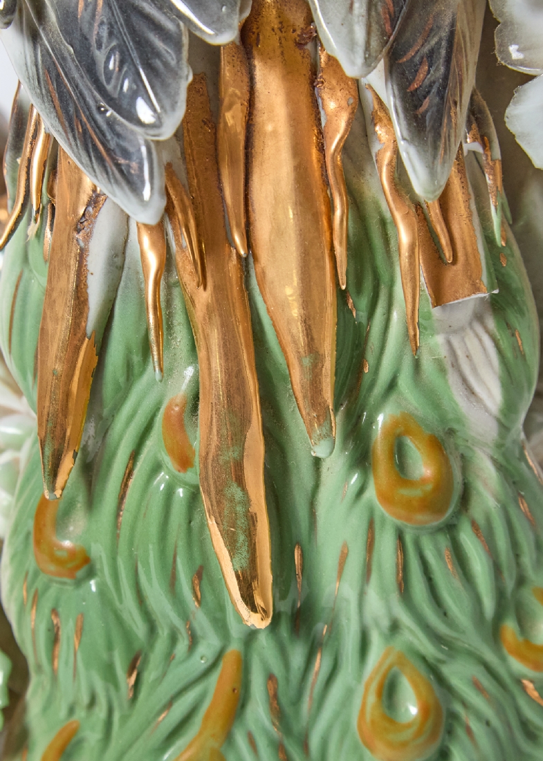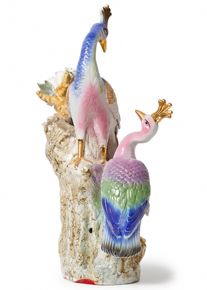 פסל פורצלן גדול בדמות טווסים על ענף פורח צביעת יד, לא חתום