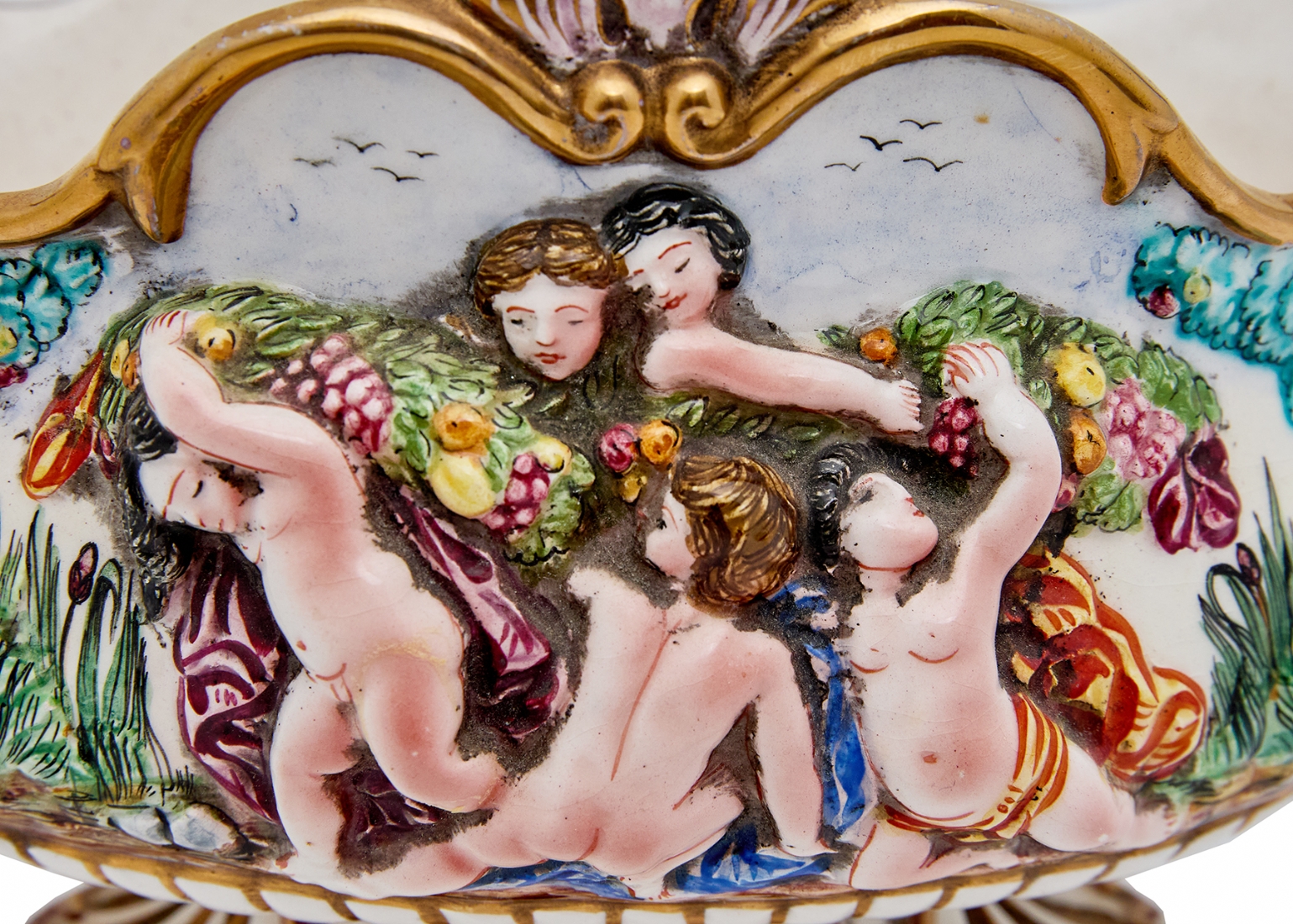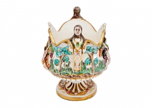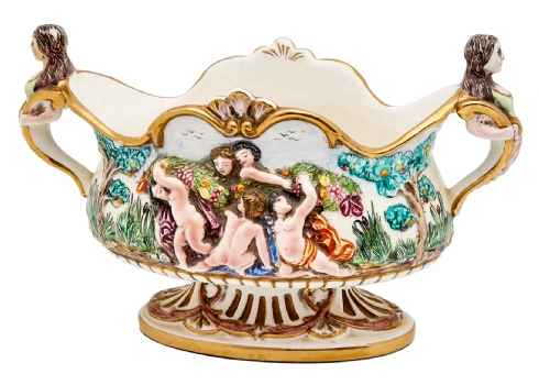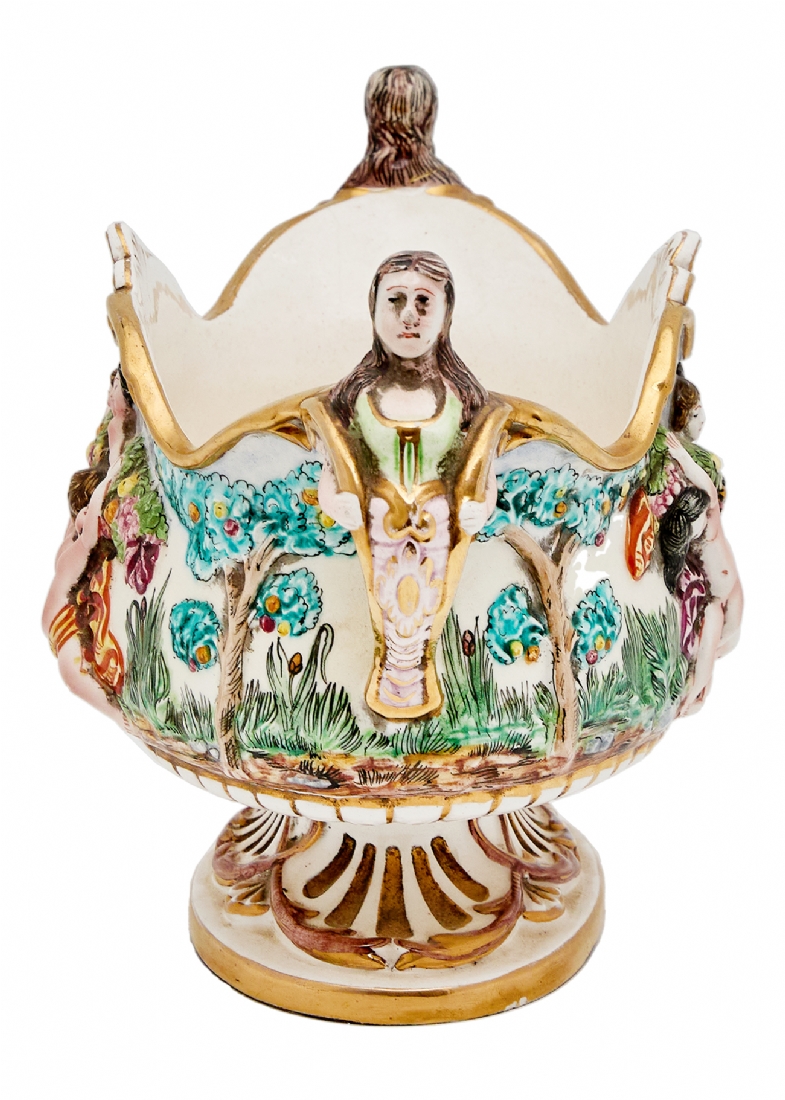 מעוטר בעיטורי בלט צבועים ביד באמייל ובזהב, חתוםאורך 30 ס"מרוחב 16 ס"מגובה 20 ס"מ