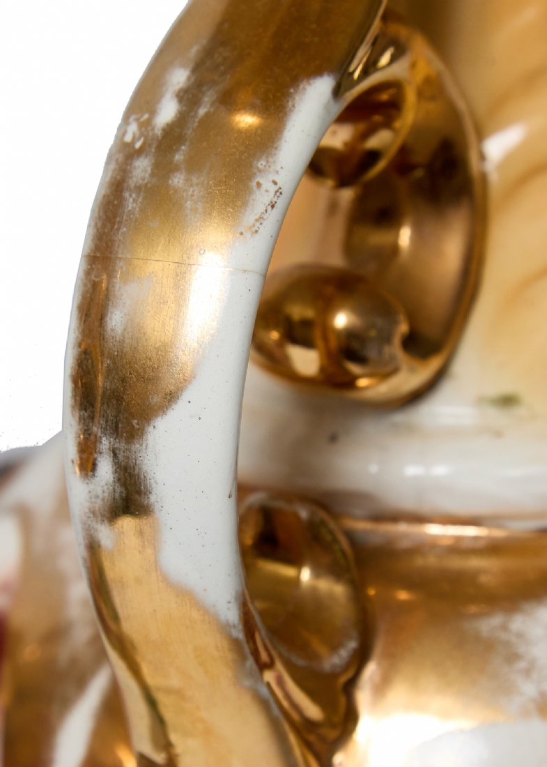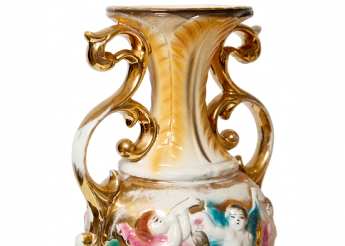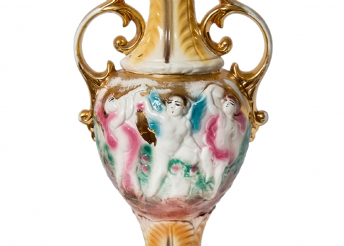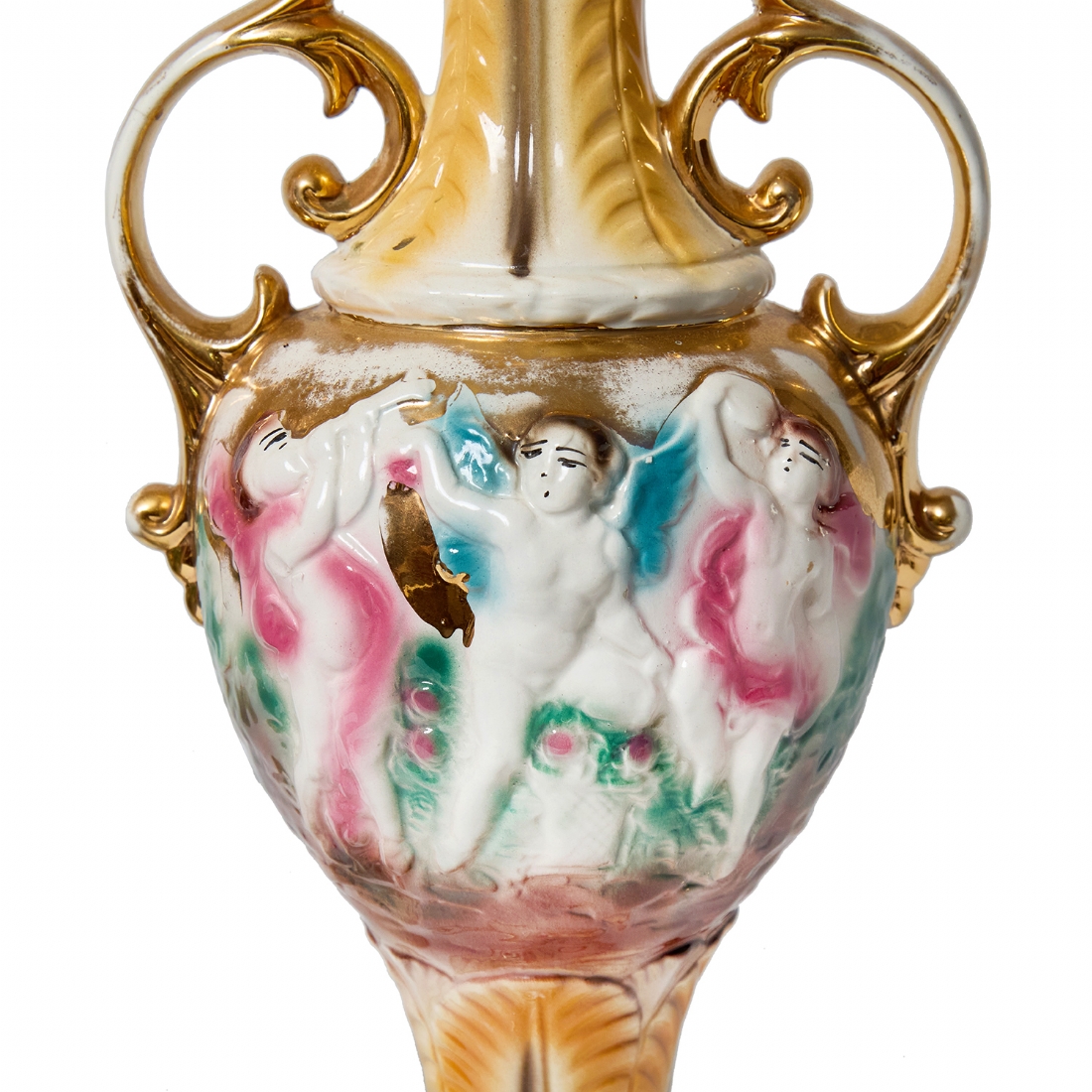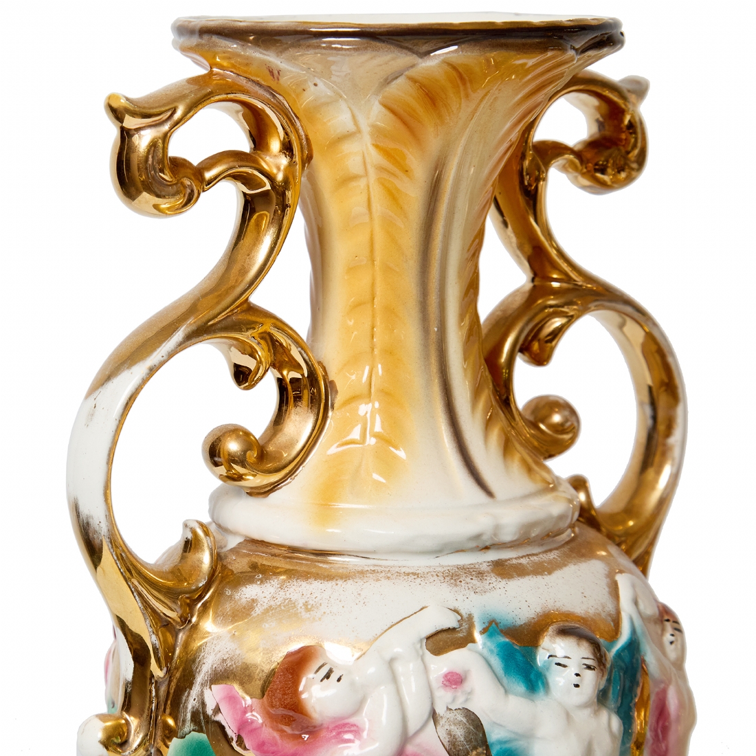 זוג אגרטלים איטלקיים עשויים חרס, מעורים בצביעת יד באמייל ובזהב חתומים