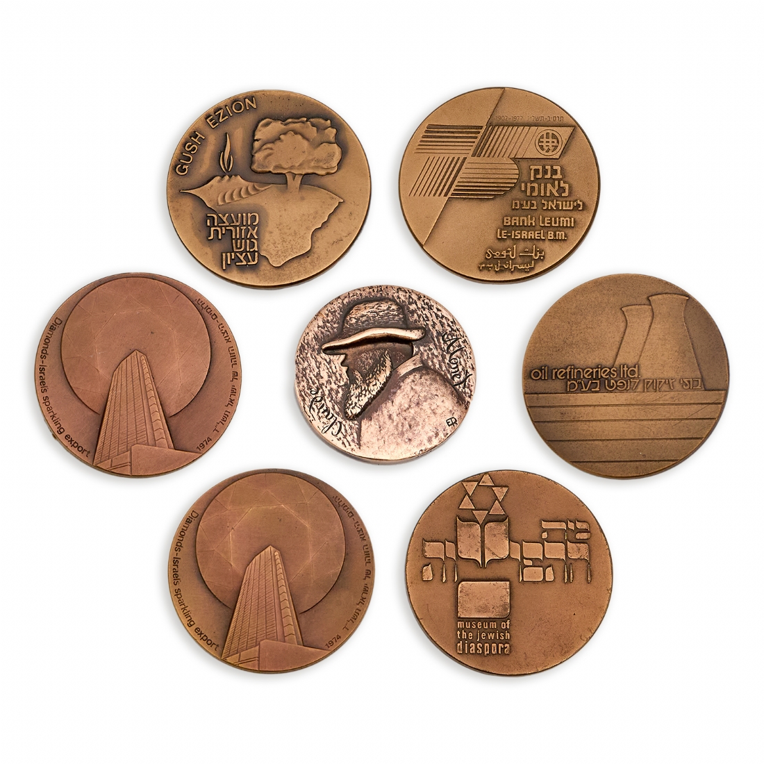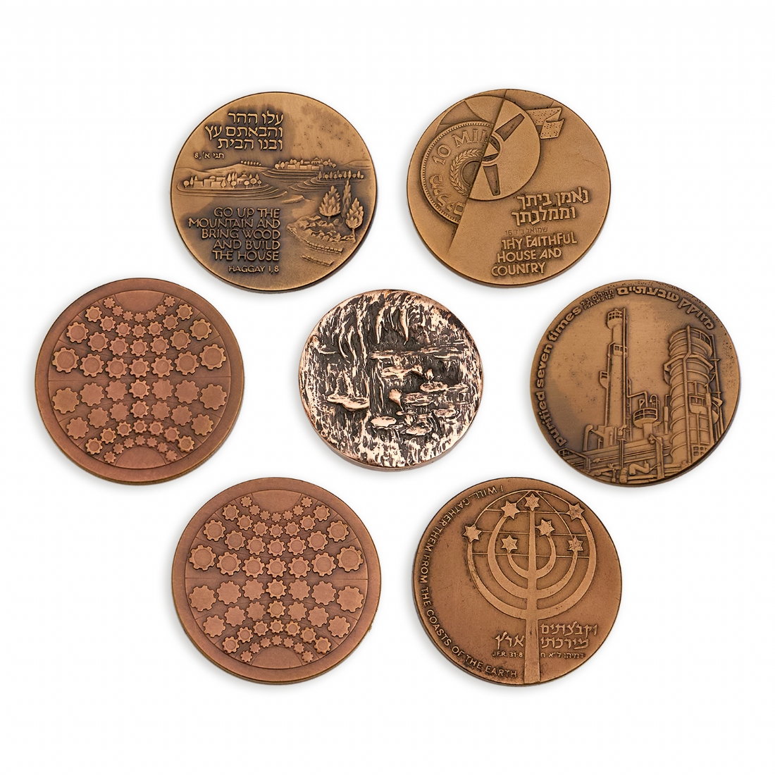 7 מדליות נחושת שונות דגמים שונים