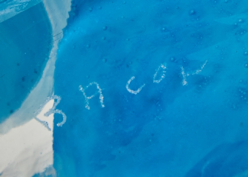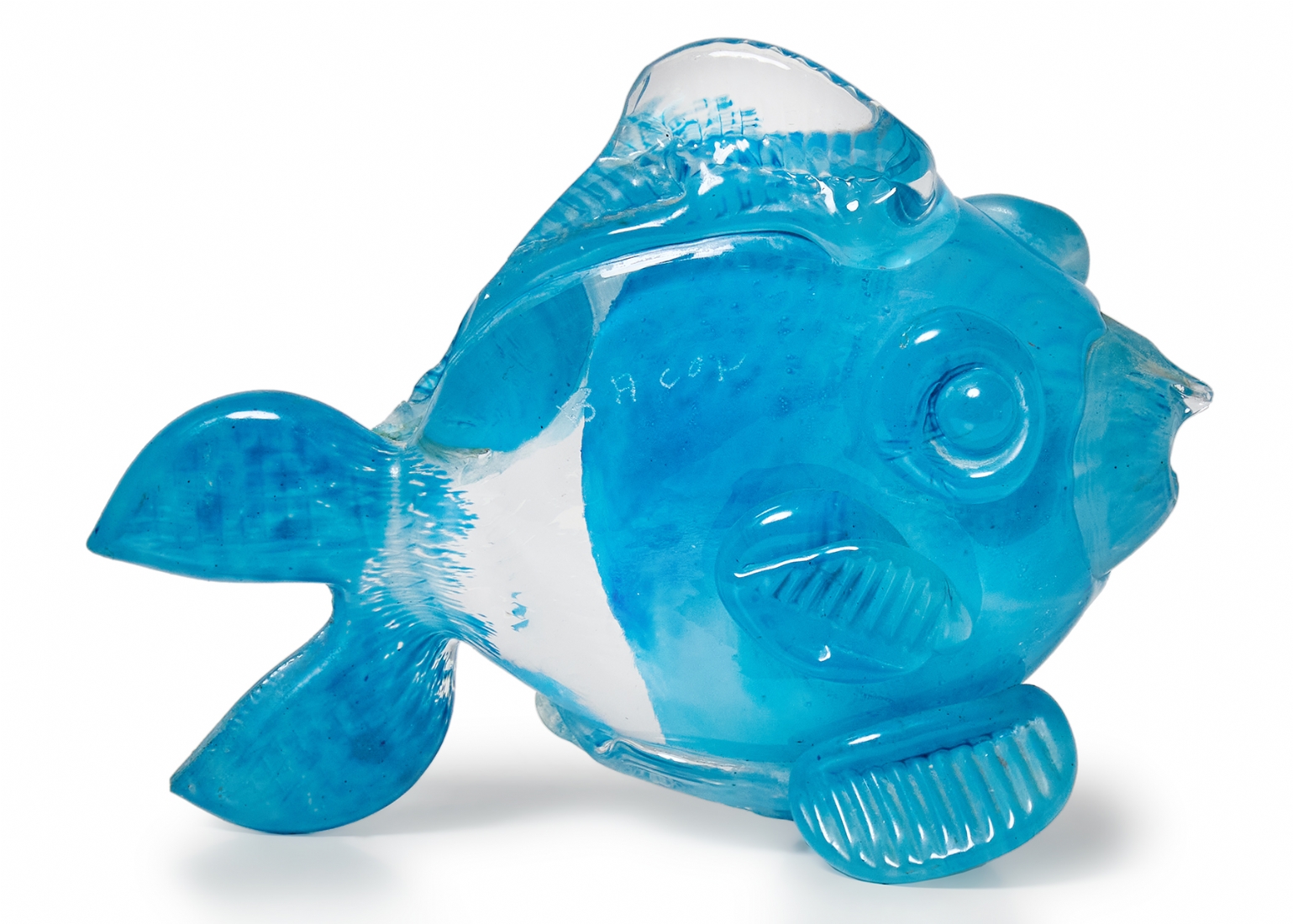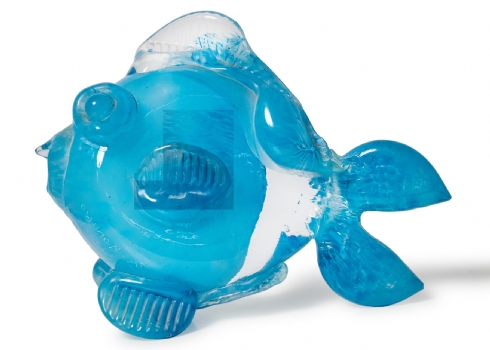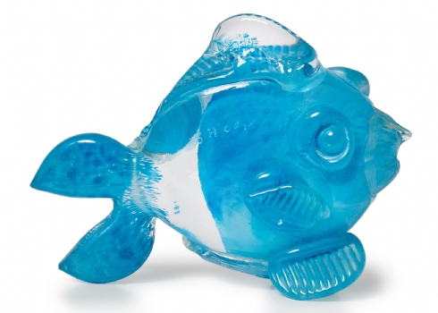 קישוט שולחני בדמות דג עשוי בעבודת ניפוח ידנית חתום