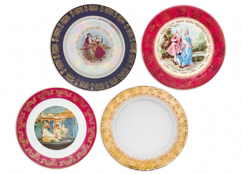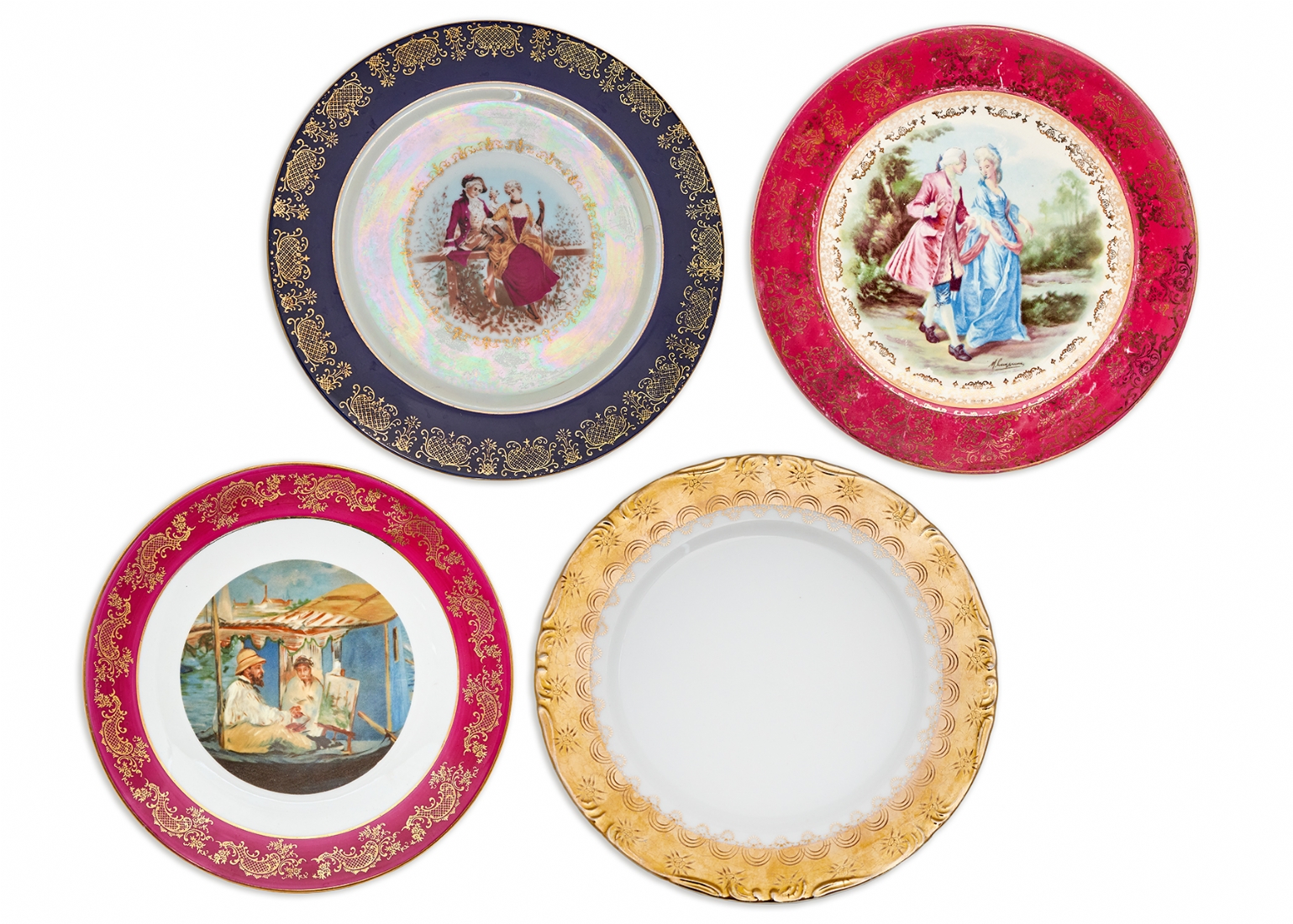 4 צלחות שונות, יצרנים ודגמים שונים, חתומות