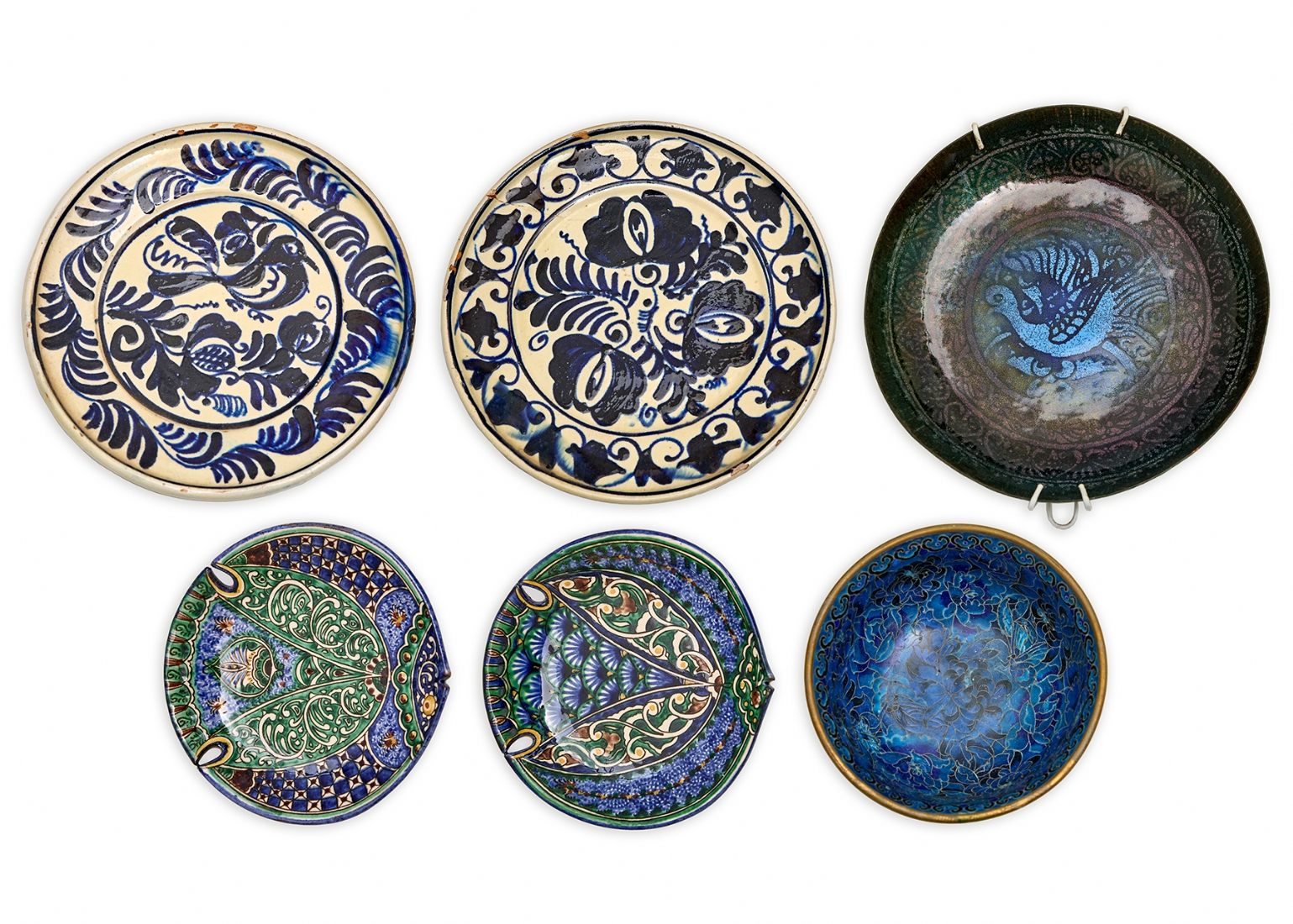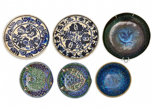 6 קערות וצלחות שונות יצרנים שונים, חלקם חתומים