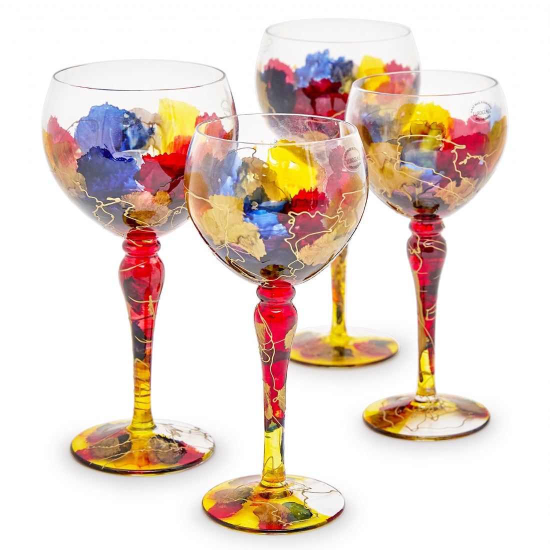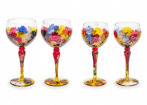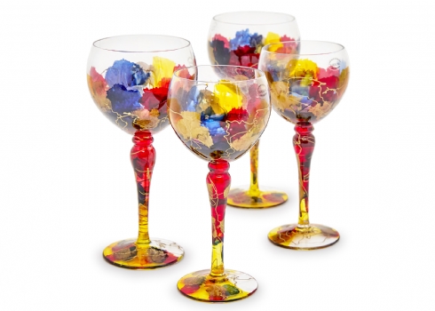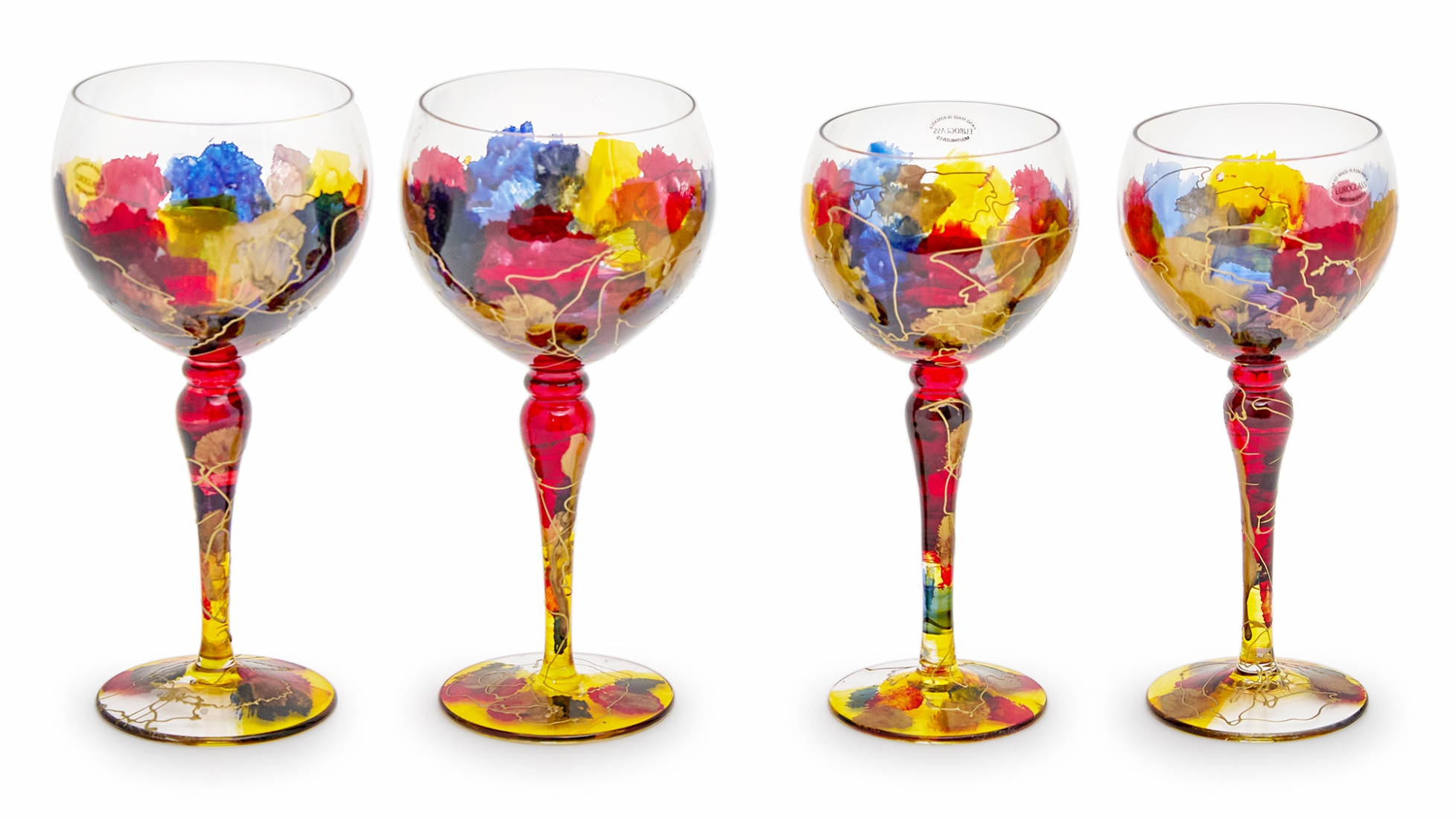 ארבע כוסות יין מזכוכית קריסטל בעבודת יד, Romania – Royal Danube Crystal